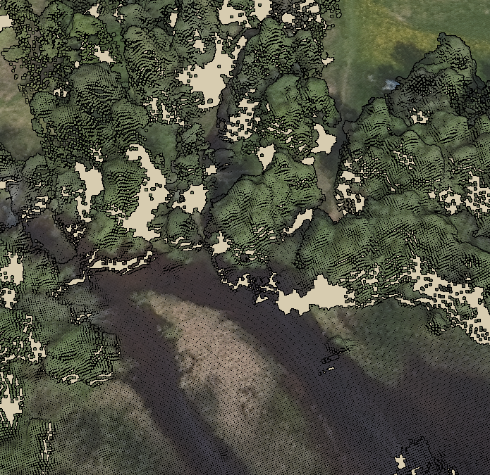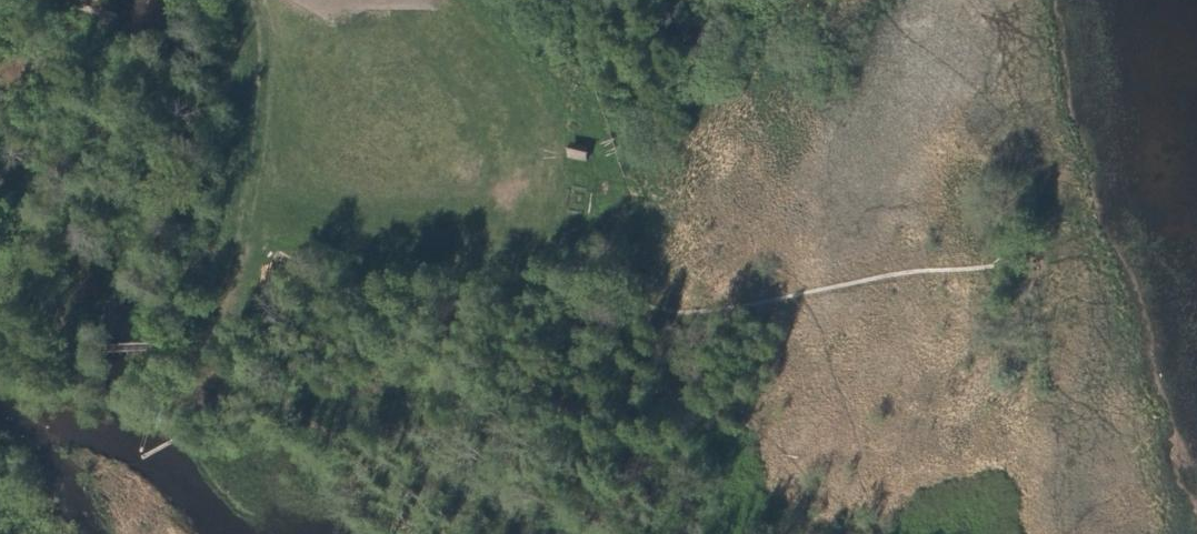 Har aldri vært der selv, men om du går in på norgeibilder.no så finner du flyfoto fra 2025 med bedre kvalitet. Der ser man tydelig gangbrua som også er tegnet inn på topografisk Norgeskart, så det peker jo mot at det er farbart til fots der Ut fra nasjonal høydemodell DTM ser det ut som traktorveien går helt ned til vannkanten også (den kan være fin for å se litt konturer i skogbunnen som man ikke ser på flyfoto). For moro skyld kan man også "se" området sånn halvveis i 3D: Ser altså ikke ut som det bær være veldig problematisk å komme seg ned til vannkanten. Alternativt kan det kanskje være en idé å følge det som ser ut som en oppgrusa (eller klopplagt?) sti østover? Blir ikke mange meter ekstra, og der ser det hvertfall åpent og greit ut, muligens litt bløtt på slutten. - I dag