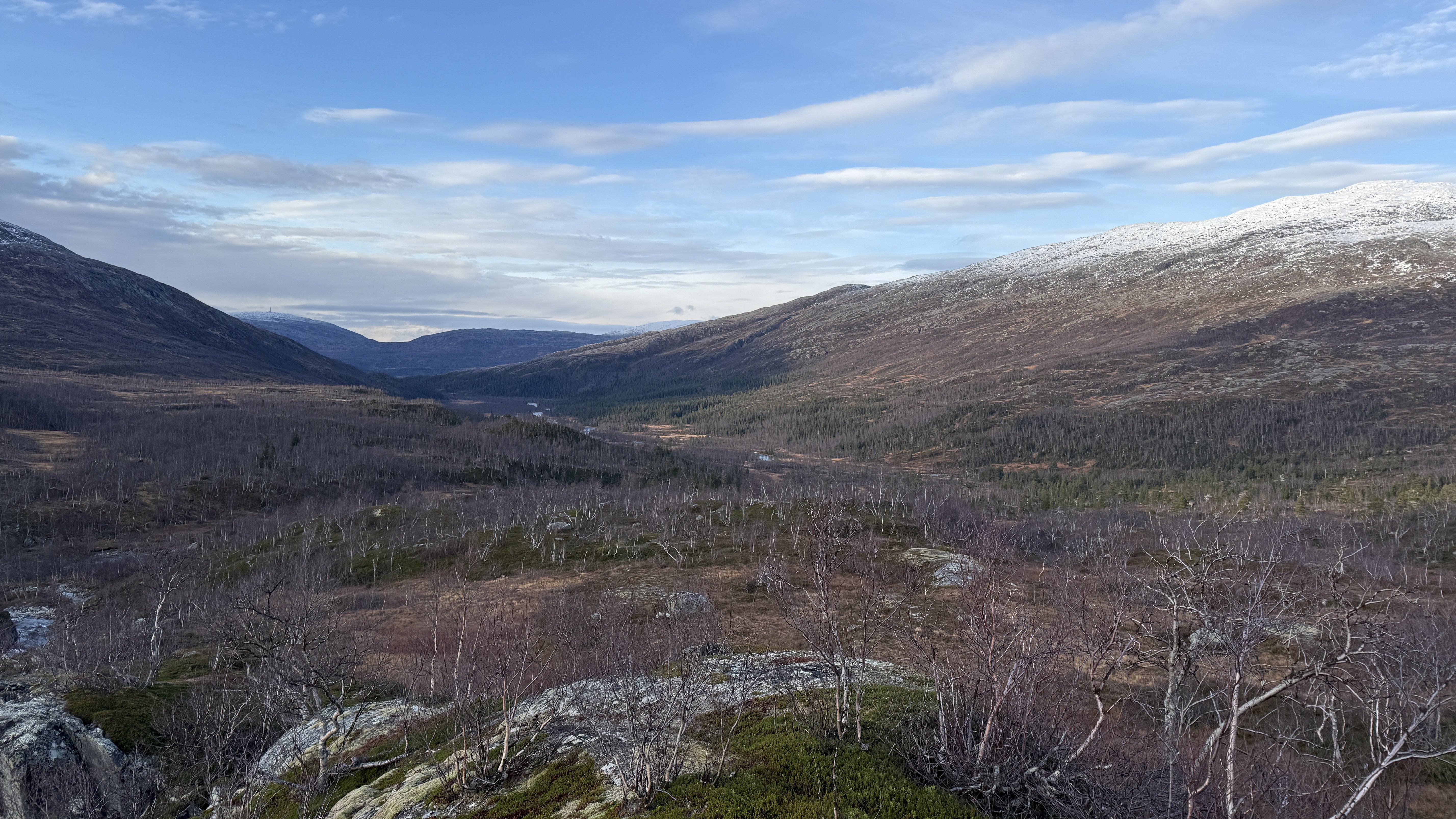 En liten runde innover Simskardet og Biseggskardet. Vinteren lar vente på seg i Børgefjell. Håper nå på skikkelig frost før snøen legger seg. Synd at når terrenget blir finere må man snu - om man da ikke har med telt. Korte dager. Fortsatt fint barmarksføre- og det frister med ny tur inn i mer sentrale områder av nasjonalparken.