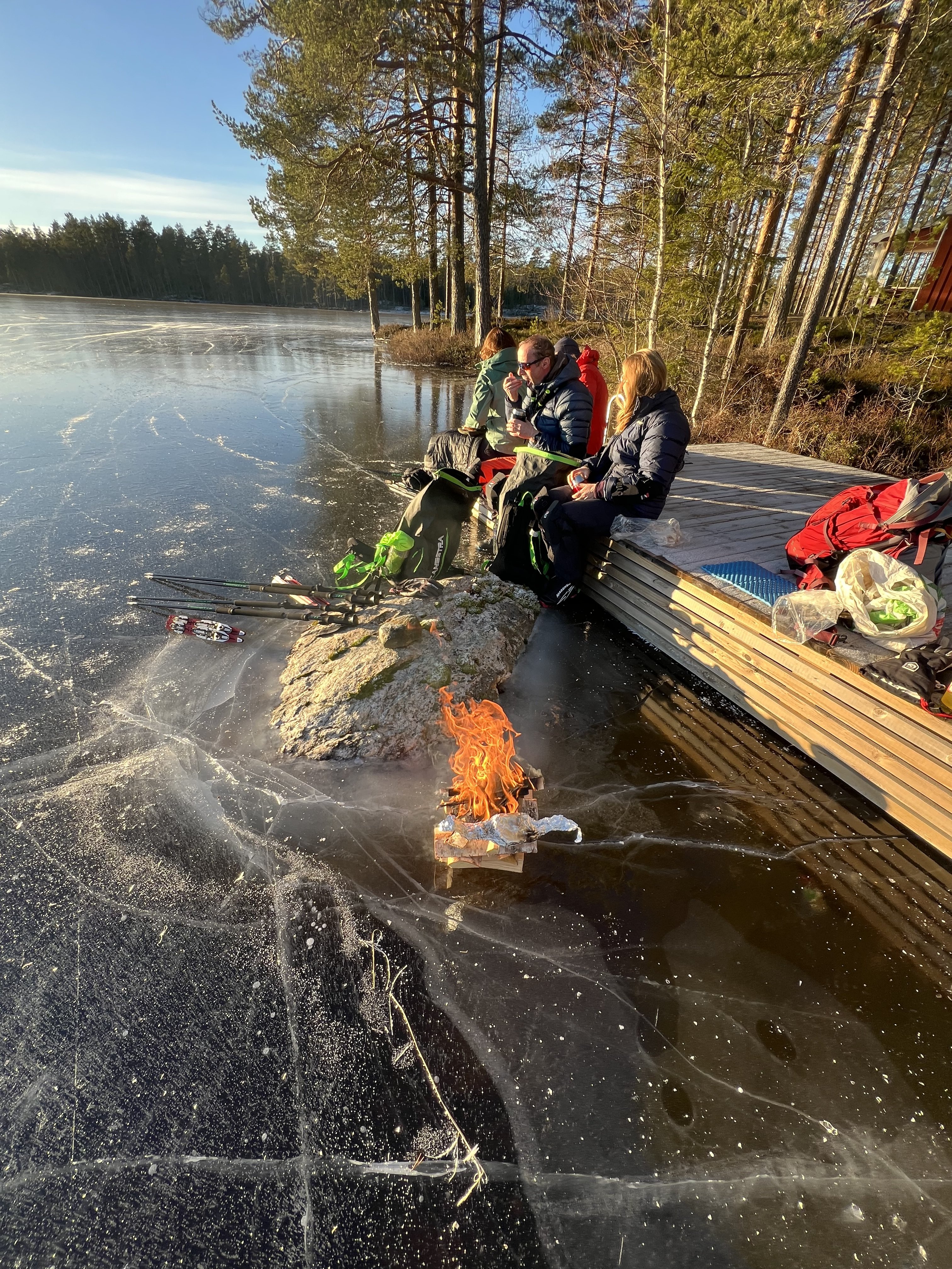 Utlyst fellestur på Fjorda hvor jeg var leder På grunn av meldt nordavind opp mot 18 m/s valgte vi oppmøte i sør, ved Haukfjorden. Gikk stort sett i le og medvind på flott, ny stålis – fungerte veldig bra. Medvind hjemover 😇 Hyggelig gruppe med 6 deltakere, litt isprat og testing av sprekkmønster i utosen. Totalt ble det 29 km, i jevnt tempo rundt 14–15 km/t. Turskøyter er et fantastisk flott middel å komme seg rundt i dette kano/kajakk-eldoradoet. Bålpause med solid påskestemning 🐣