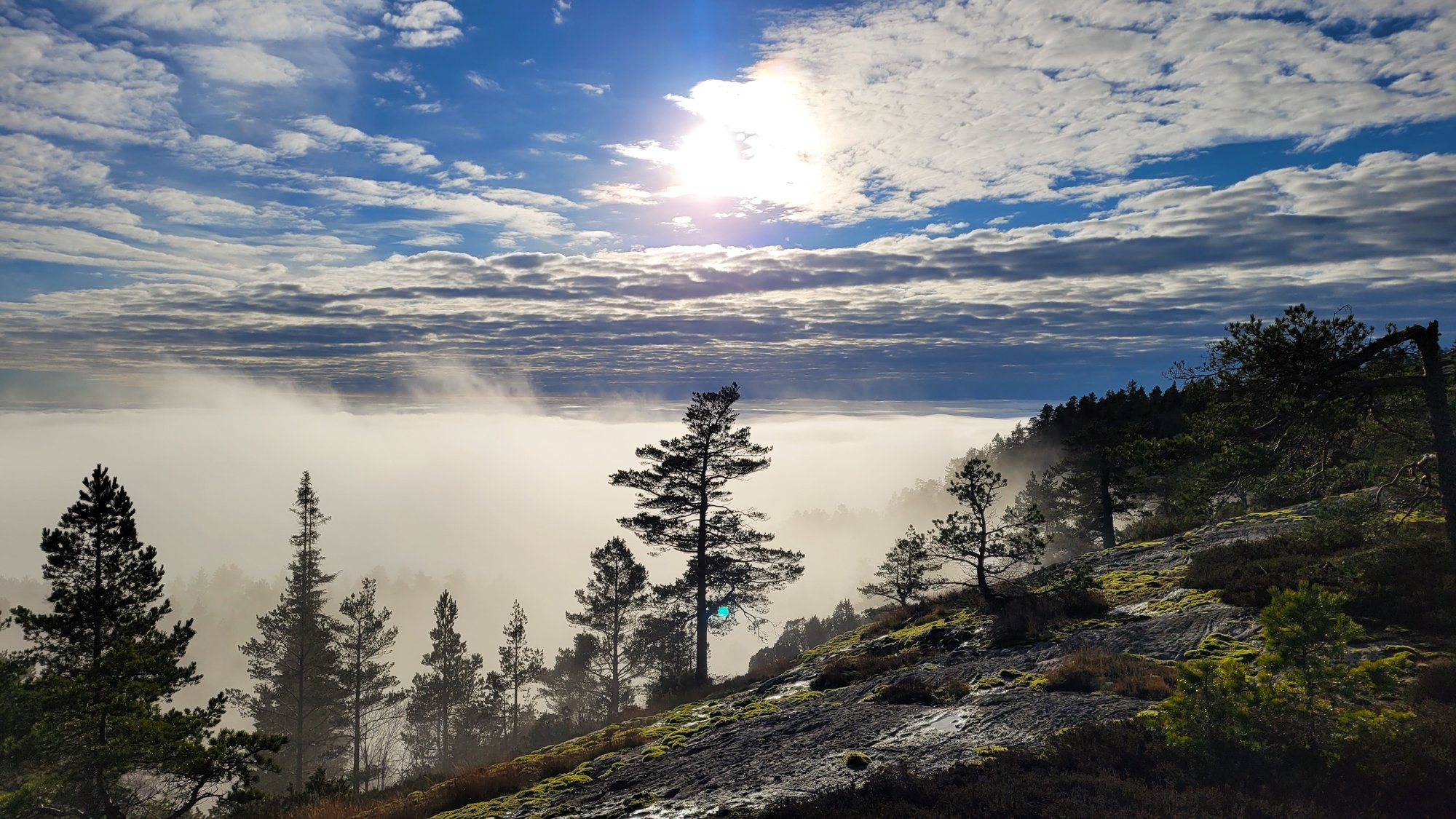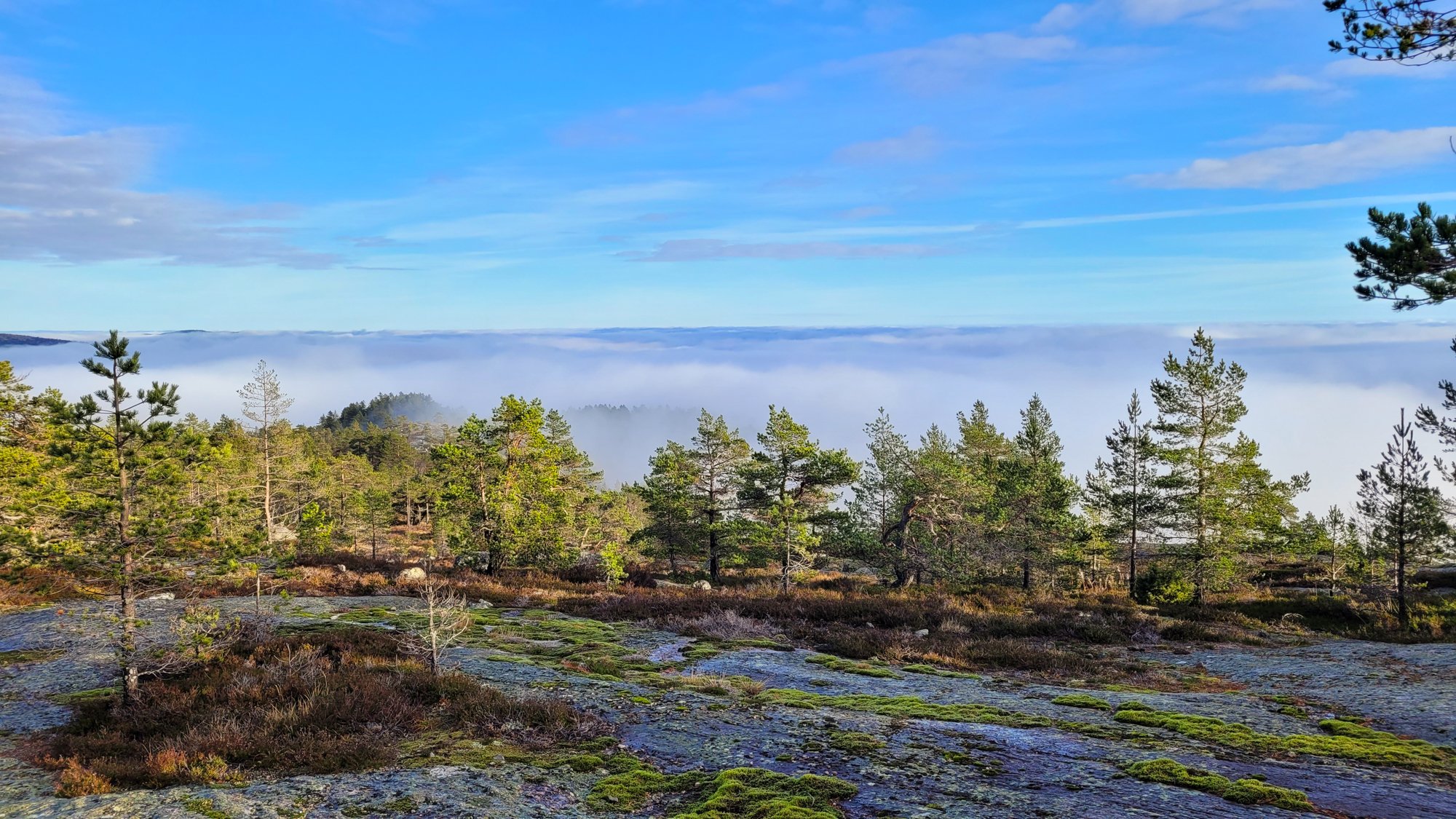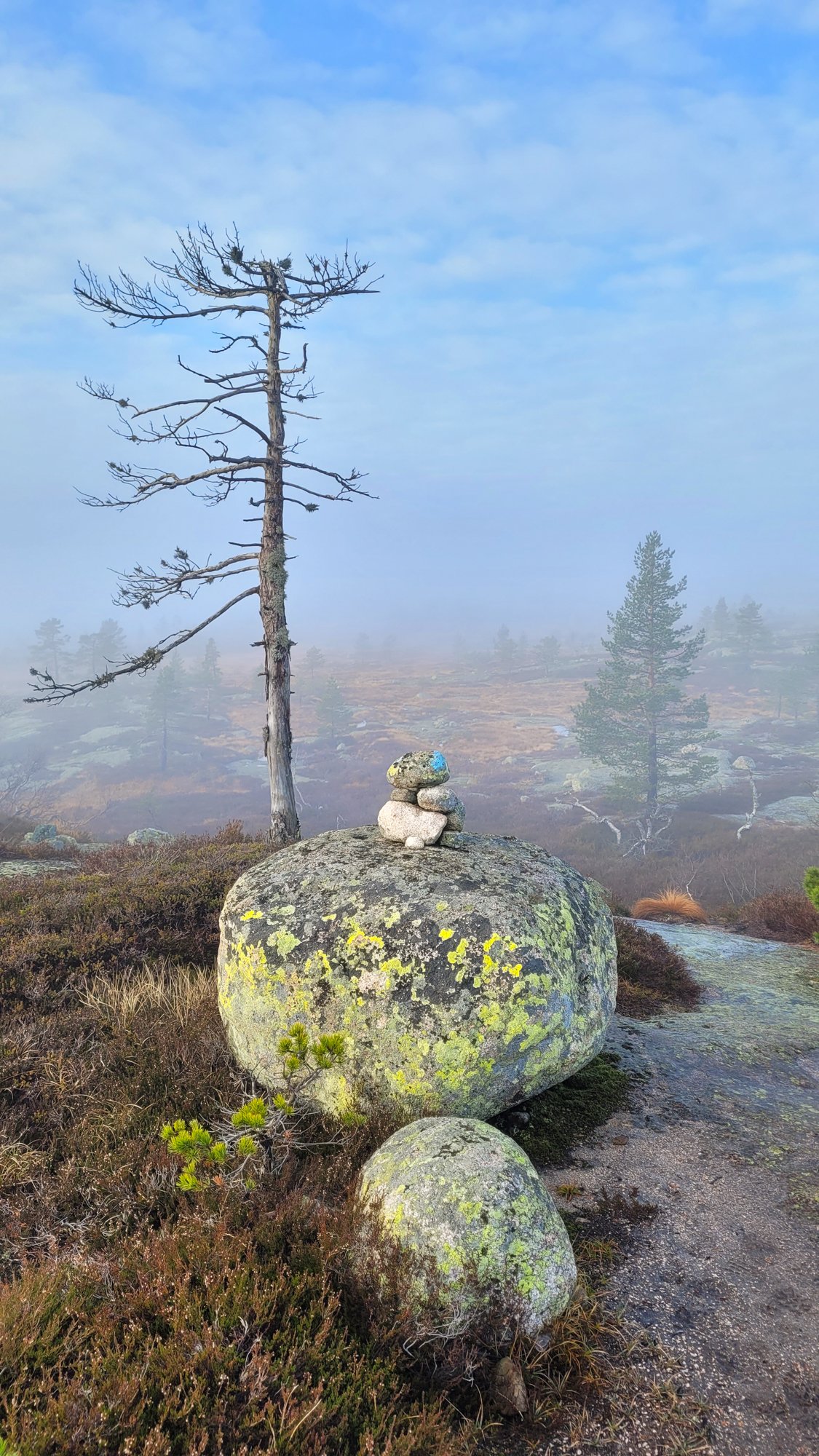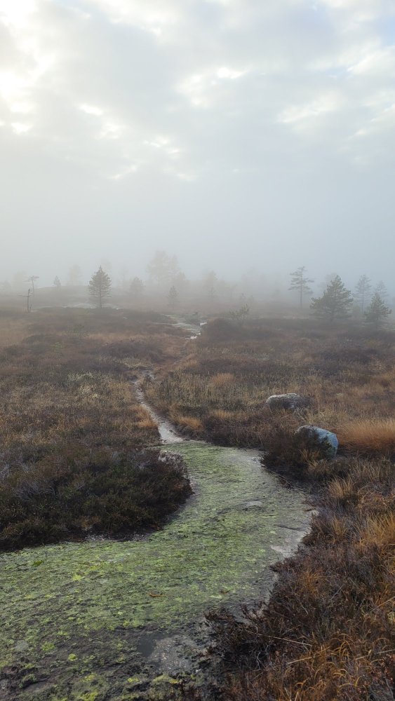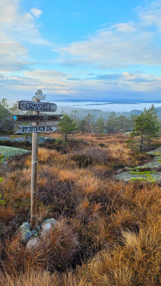 Tur i tåke og sol på Havrefjell og Ormfjell (Gjerstad/Agder) forrige søndag. Kun rolig tur, 11km 3t50min. Litt ekstra vekt i sekken, som ikke ble brukt..
