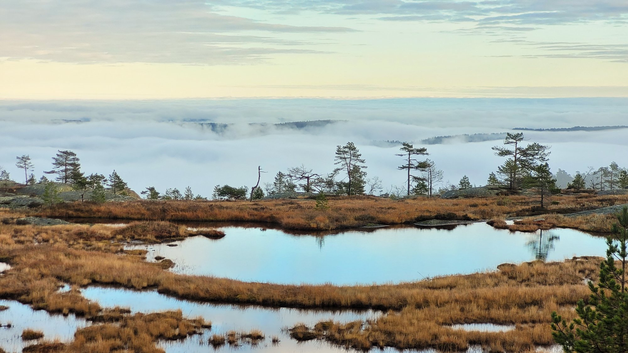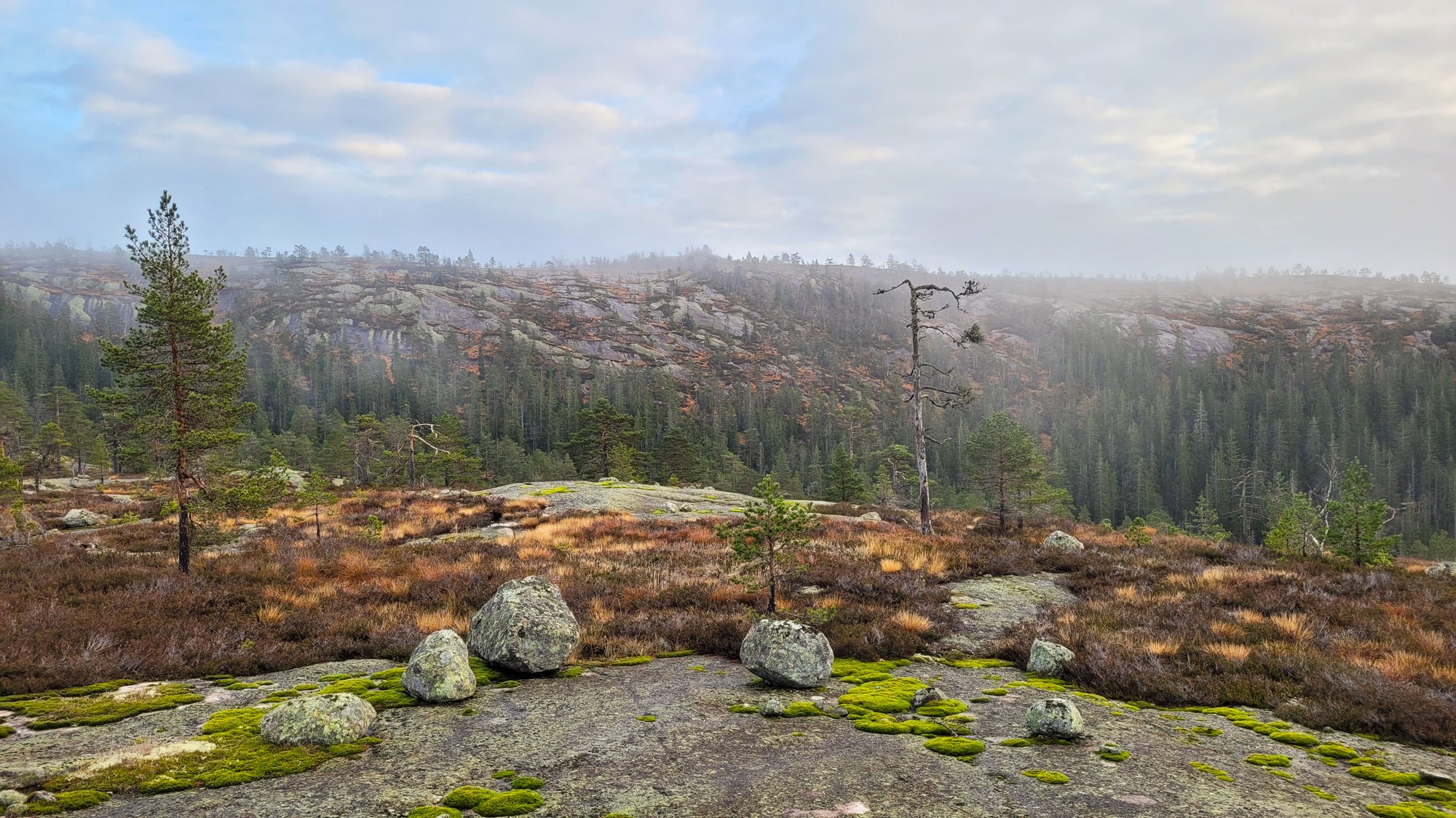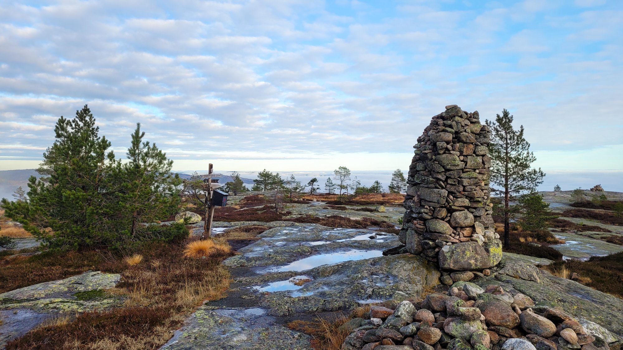 Tur i tåke og sol på Havrefjell og Ormfjell (Gjerstad/Agder) forrige søndag. Kun rolig tur, 11km 3t50min. Litt ekstra vekt i sekken, som ikke ble brukt..