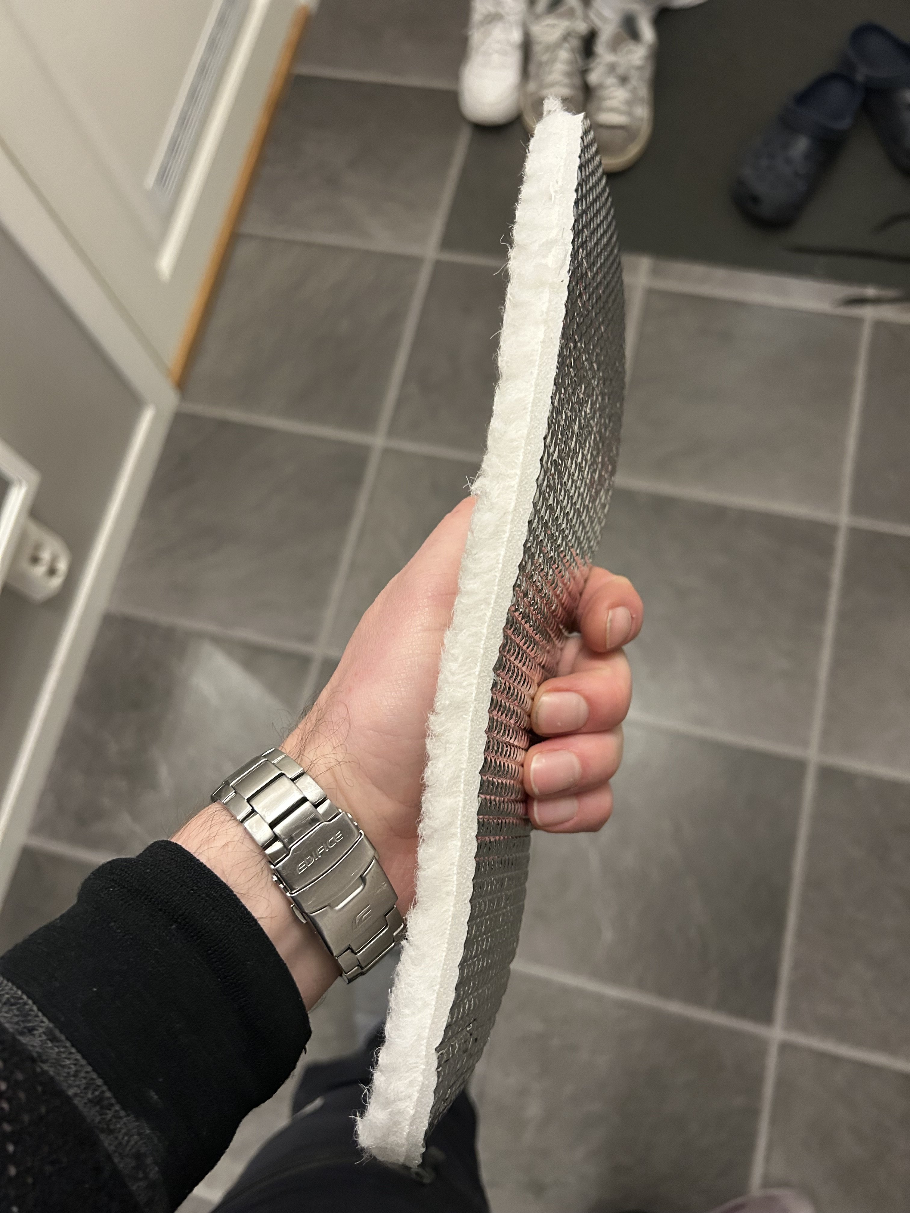 For å få til reflekterende såler kan jeg bruke løsningen til @rayun, eller alumimiumsteip under sålene. Det hjelper sikkert ikke så mye, men mange bekker små. Jeg har et par tykke ullsåler hjemme, med skum og refelktormateriale i bunn. De blir alt for tykke: Jeg prøvde meg på et par skoovertekk i 3 mm neopren. Tanken er å lime borrelås på skotuppen, og på innsiden av neoprenet, slik at den henger på plass på skotuppen, og en liten stropp under skoen. Jeg bruker gamasjer som overlapper godt her. Jeg har troen på neopren, det isolerer jo veldig godt, og man hindrer både snø og trekk i å treffe rett på skoen. Men jeg ble ikke helt fornøyd med passformen på den, så om det blir noe av dette prosjektet vet jeg ikke. Nederst langs kanten tenker jeg å sy dobbel neopren, eller et lag med corurastoff som skarebeskyttelse. - I dag