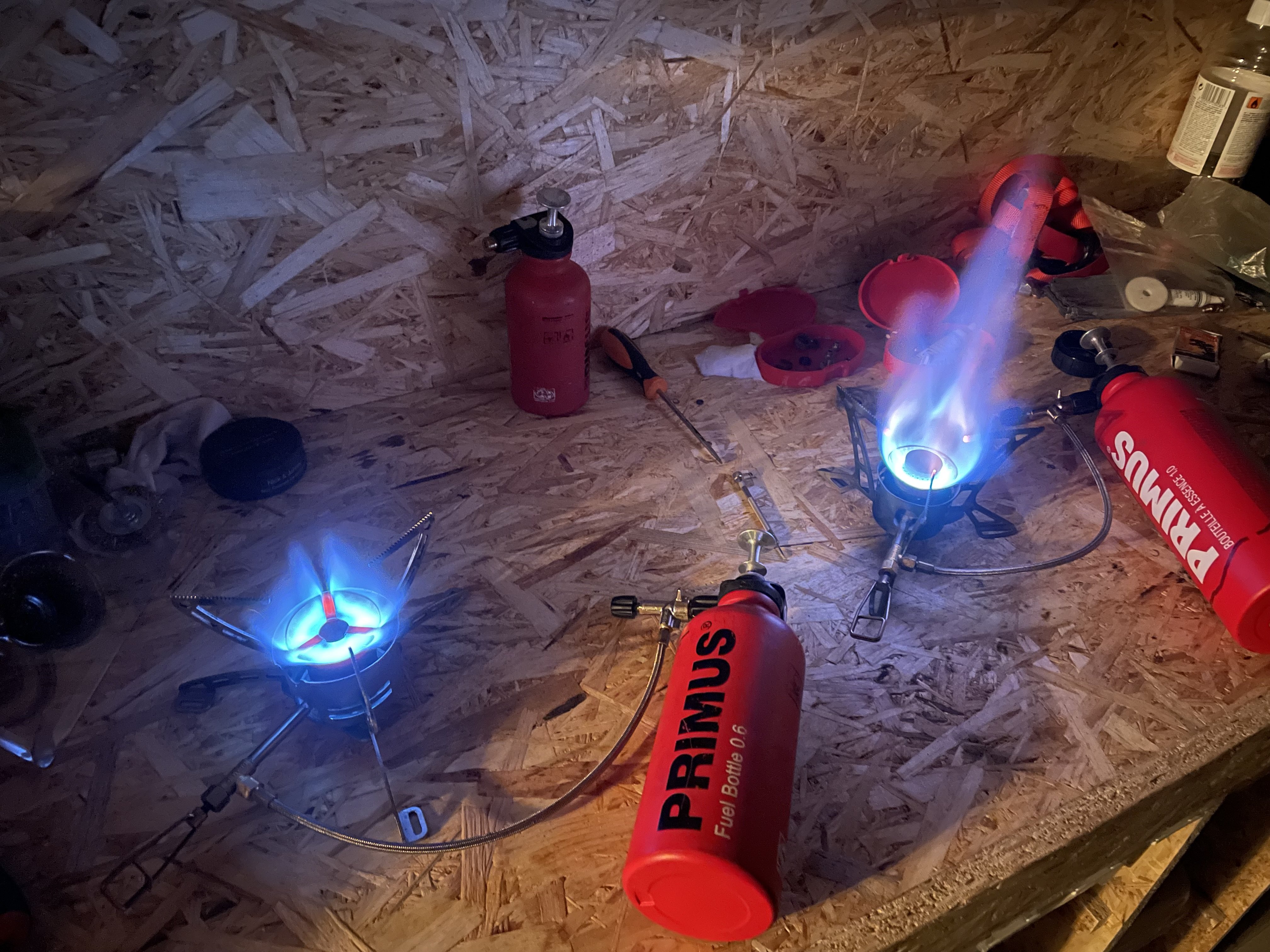 Kjøpte meg en brukt omnilite ti. Var spent på dette har ikke hatt brenner med silencer før. Har bare hatt en brenner tidligere, blir en litt lengre vintertur i vinter så kan jo være greit med en i reserve. Første prøvefyring sto til stryk i mine øyne. Etter en runde med full demontering og et lite sitronsyrebad ble det noe man kan leve bedre med. Den gamle trofaste omnifuelen fikk samme behandlingen selv om jeg egentlig synes den har brent fint men skal si det ble forskjell på den også. Så da kan vinteren komme og pulken pakkes. - I dag