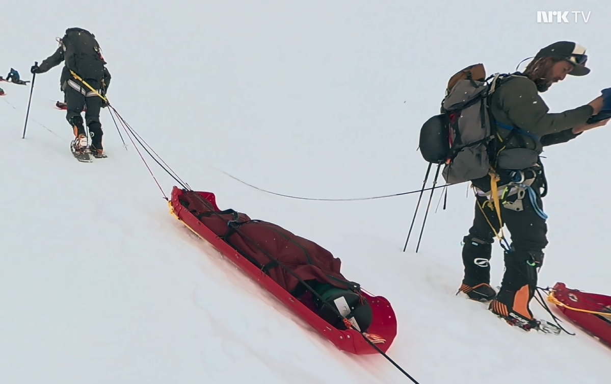 NB! I denne tråden vil du finne spoilere trolig helt frem til den sist sendte episoden. Så pass på å ikke lese dersom du ikke vil få noe spoilet. Jeg storkoser meg lørdager med en kopp kaffe og disse eventyrerne som skal til Denali. Eventyret ser mildt sagt heftig ut og det virker til å være en virkelig "once in a lifetime" for de involverte. Det er likevel noen ting jeg merker, og som jeg lurer på om andre har erfaring med her. 1: Pulken som brukes ser ut til å være denne: https://alaskagearcompany.com/collections/pulk-sleds/products/siglin-pulk-sleds Men det henvises i EP3 til "bremsen er på" - er dette en slags ettermontert brems, for jeg ser ikke noe slik på selve produktet? 2: Noen av deltakerne har med seg egenprodusert, sjølvpakka mat av typen lettbedervelig. Brownie, gulrotkake, chiapudding er alle ting som har en holdbarhet på 4-5 dager dersom det ikke pasteuriseres og pakkes på forsvarlig vis eller fryses. Jeg kommenterte dette til min kone i EP1. Nå på tampen av EP3 hintes til at noe, eller all den maten er fordervet. Burde ikke sikkerhetsteamet fange opp dette før avreise?