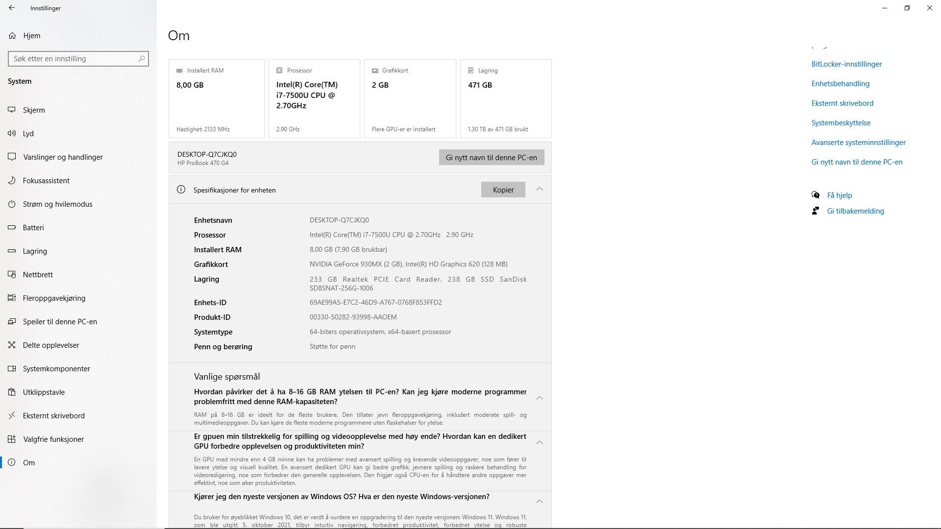 Hei igjen, Har lagt ved en printscreen, så du kan se spes. på laptopen min. Nå har jeg justert til riktig FPS. Filmen hakker jevnt. Takk for hjelp - I dag