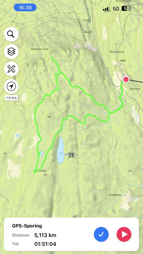 Da rakk jeg en tur i høyden i Nordmarka, hadde fått tips om is på en myrpytt, det måtte sjekkes ut. Kjapp planlegging på Topokartappen til @Ivan Lé Hjelmeland Den funker knall. Var utrolig tett tåke, så turte ikke stoppe der den var tykkest Opp over tåka og ser Gyrihaugen 682 moh i bakgrunnen med litt sol. Enn del trefall. Små putter var isdekt. Postkassa på Aboråsen er et fint mål. Myrpytten var isdekt, men varm luft nå. Du ser stjernemønsteret etter nattgammel is. Tidlig med islagte putter på 532 moh i Nordmarka. Mer trefall mot Kongens Utsikt. Litt info Den lå akkurat i grenseland for tåka. Bare få meter opp og du kunne se sola på vei ned. Alltid artig å se dette. Ned i tåka, fant igjen bilen😇 Fasit faktisk gått. Vs 5.05 km på tegnet. Var jo bortimot vannet og måtte runde ei myr, pga vått i terrenget. Rakk ned før det ble mørkt.