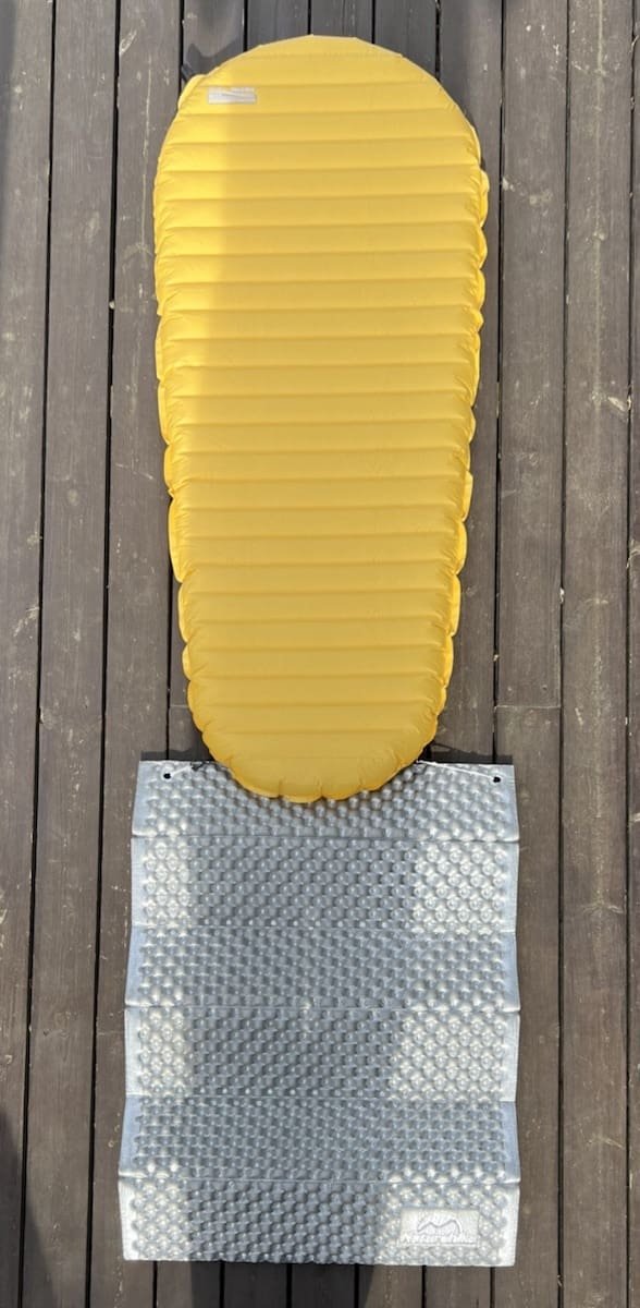 Tja, har ikke tenkt det med denne. Har prøvd Z-lite i 2 og oppblåst Thermarest small. Funker i teorien, men ikke i praksis for min del, bruker 58/60 i jakke, så arma havner på utsiden, pluss blir en del styr å få det i «water» med klær/sekk etc. så da er vi over på stupid light😇. Så har vært der…, men en ting er viktig og det er god søvn🥳. Pluss det blir mye styr. Link til innlegget