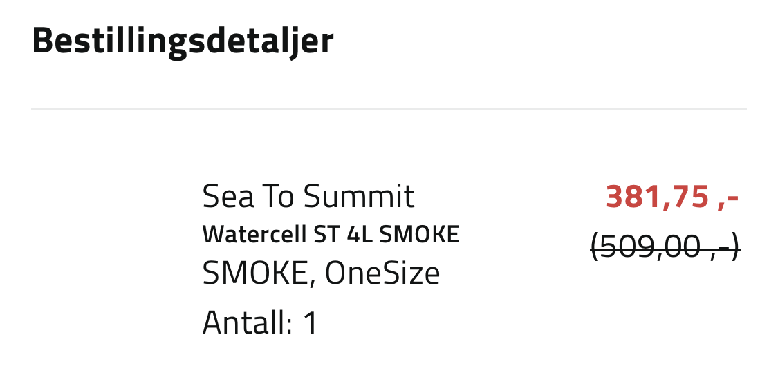 Fant og kjøpte en STS Watercell X 6L til kr 400,-i Outleten hos Speidersport.no. Har denne fra før, så dette blir en julegave. (De hadde 2 igjen der når jeg sjekket ut just nå).