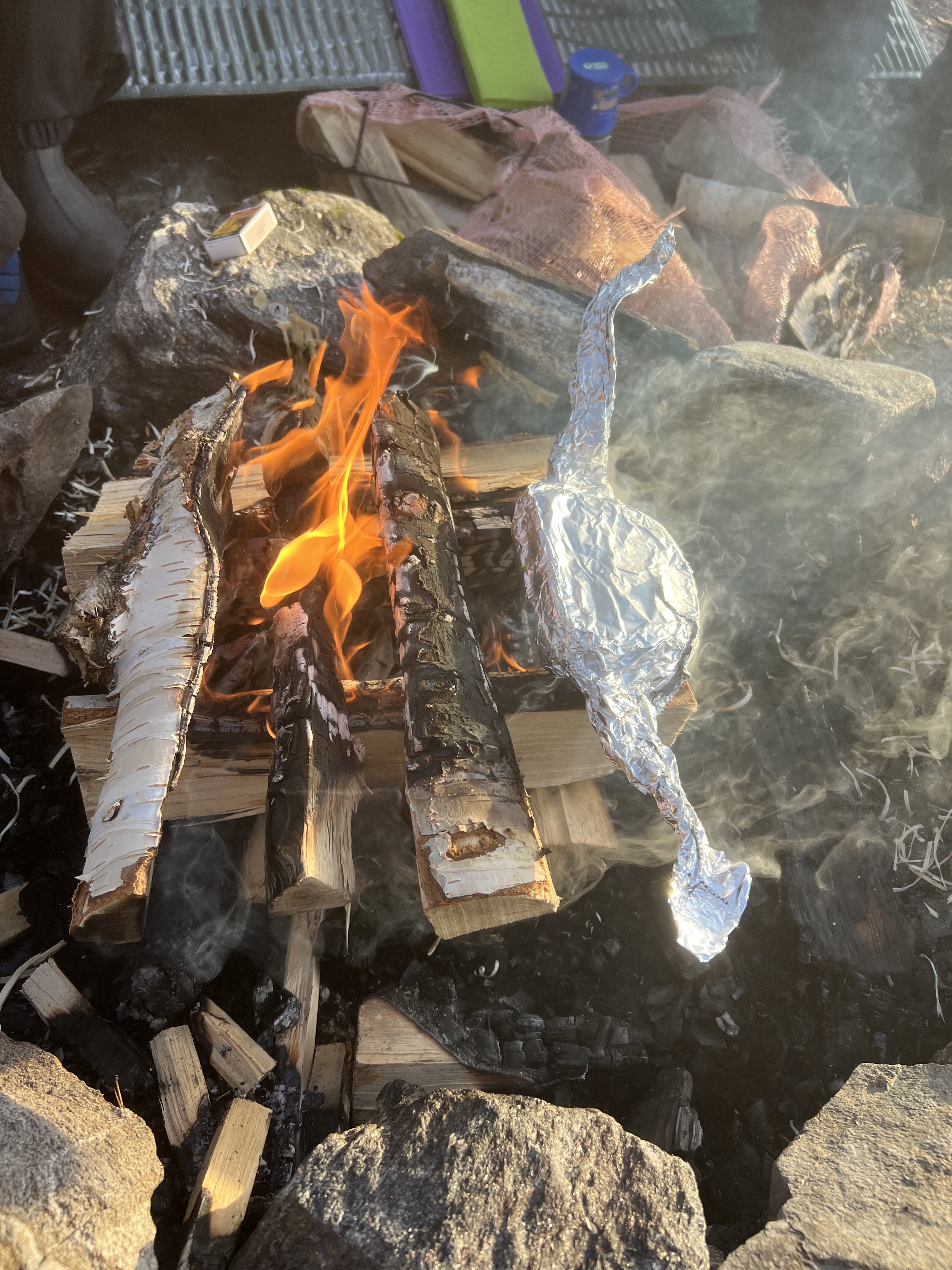 Nok en flott dag på turskøyter- nå var det gangbar is der hvor vi ikke kunne gå i går! -10 grader og klart vær gjorde susen 🥳 Det ble ikke felles bålpause i dag, da pliktene trådte til for de andre. Men fant et par familier og fikk laget ostesmørbrød 🤩 etter Twist- metoden. Du legger aluminiumsfolie ♦️slik og da får du ører til å holde i. Ikke bruker du mer folie heller 🤓