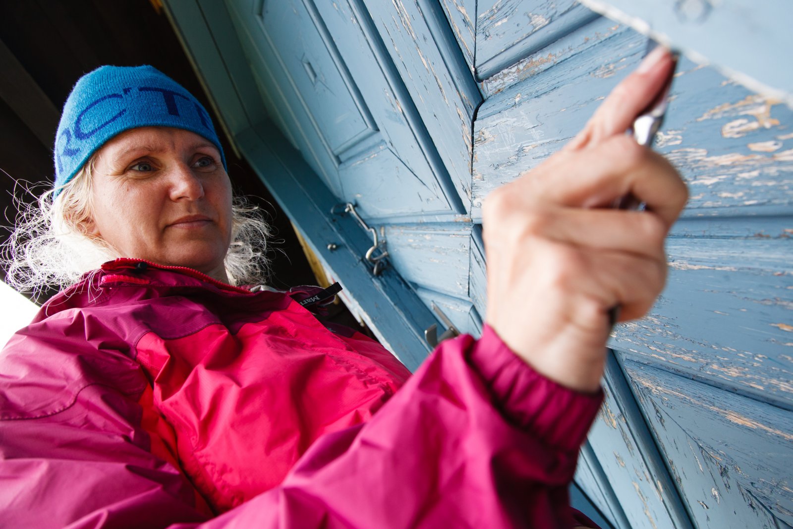 Over: Lene Strøm gjør inngangsdøren klar for maling