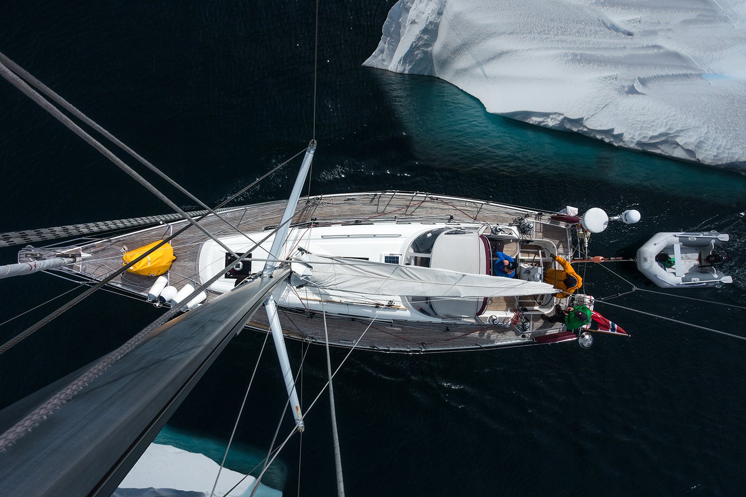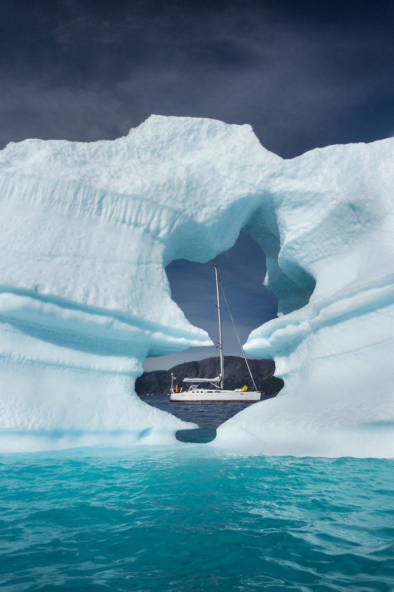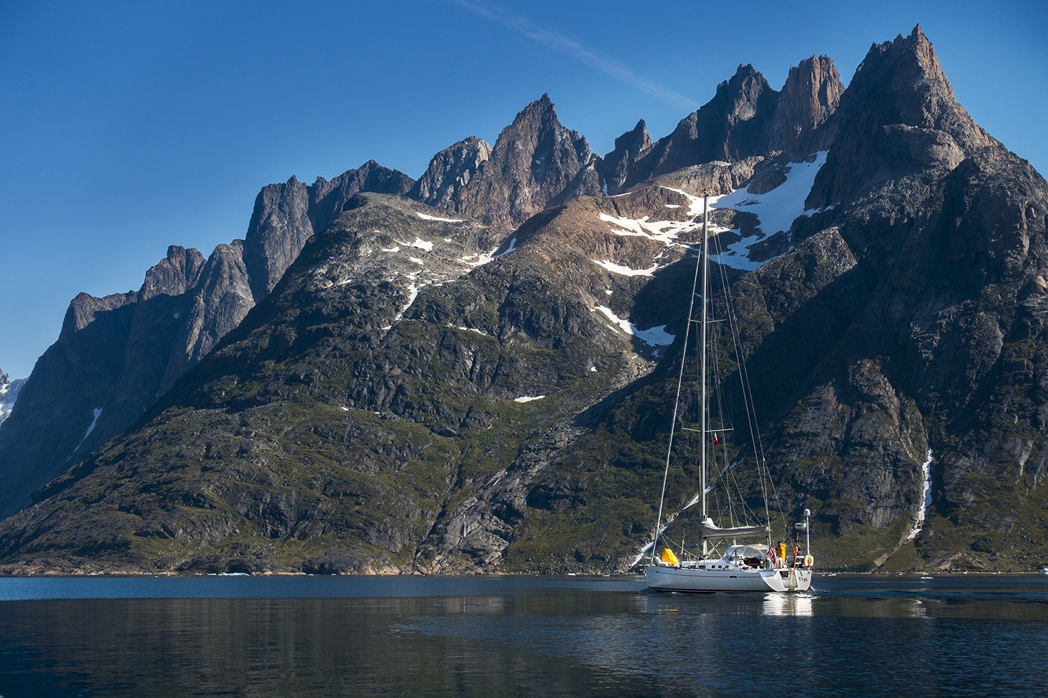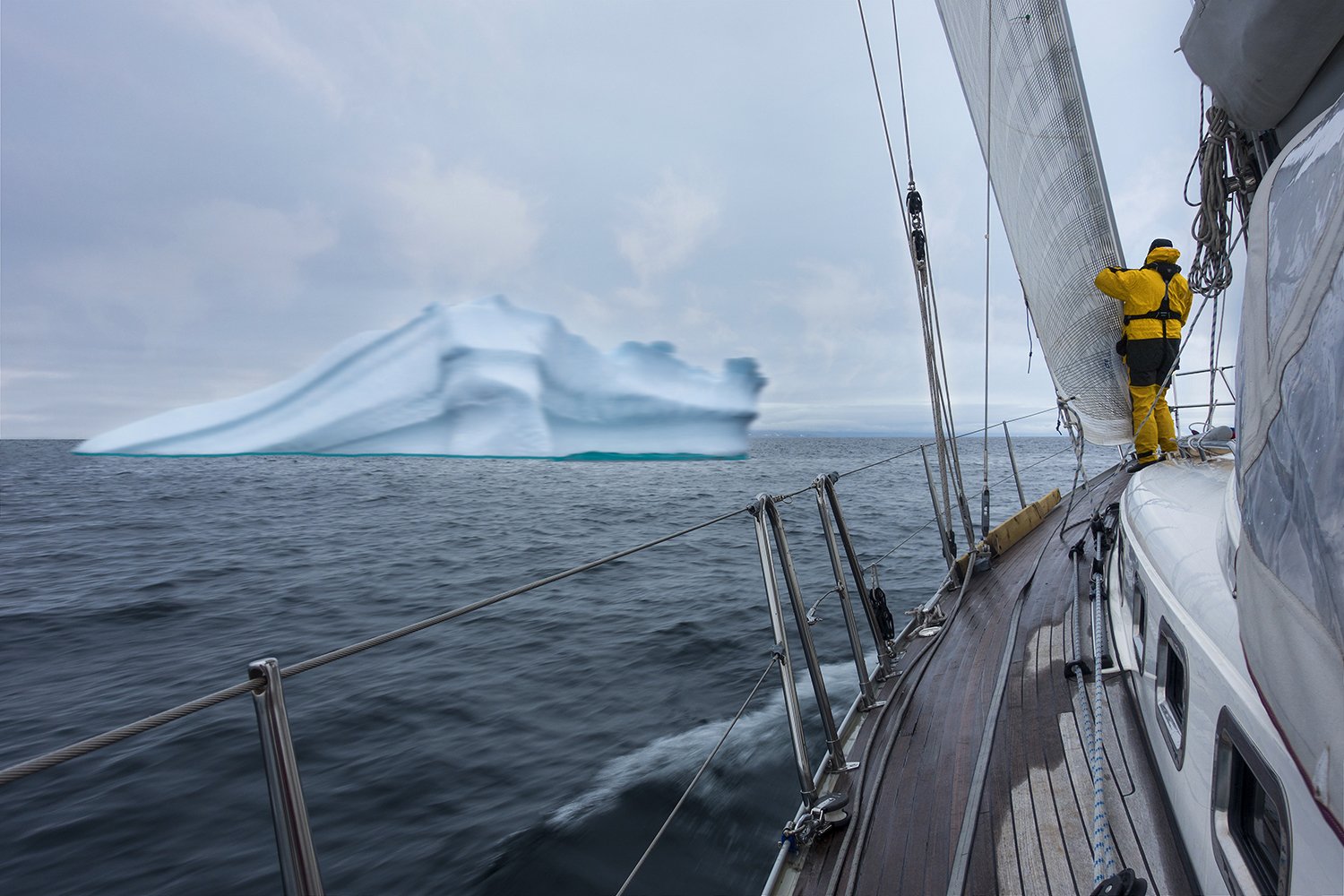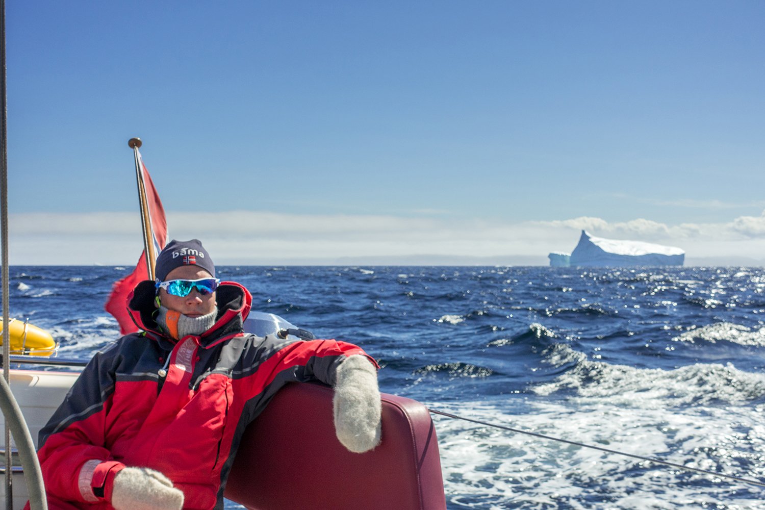 Det er noe spesielt med lange havkryssinger. Aktivitetsområdet kan regnes som svært begrenset og det er kun hav og himmel så langt øyet kan se. Dette gir en fantastisk ro over tilstedeværelsen og timene går med på lange tankesprang man ikke har tid til i den travle hverdagen hjemme. På mange måter var dette en fin måte å få bearbeidet alle inntrykk som ble skapt på land tidligere. De første dagene av en overseiling er alltid harde og brutale. Kroppen og hodet fungerer dårlig med 4 timer på og 4 timer av, men plutselig faller brikkene på plass og du kommer inn i rutinen. Jeg har vært med på en del kalde og våte seilaser tidligere, men denne turen skulle snart utvide standarden mine for vått og kaldt. Om nettene lå hav- og lufttemperatur i overkant av seks grader. Sjøsprøyten sto ofte over cockpiten i et stummende mørke. Tanken på å være varm var alltid fjern. Det eneste lyspunktet var den varme soveposen som etter hvert minutt som gikk, kom litt nærmere. Det var helst føtter og fingre som lengtet mest til en varm og ikke minst tørr sovepose. Heldigvis tar vaktene alltid slutt, og etter noen timer i soveposen er man klar for ei ny vakt. Morgningen den fjerde dagen hadde isfjellene dukket opp rundt oss da Grønland plutselig kom sigende ut av tåkehavet. Vi kunne skimte fjell ca. 60 nautiske mil (100 km) øst. Det gikk fort opp for meg hvor stor disse fjellene faktisk var.