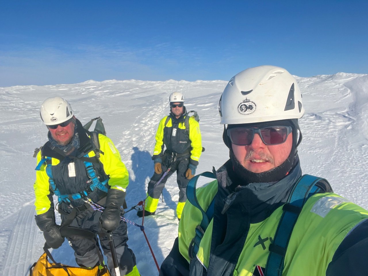 Jeg har lenge drømt om å klatre et isfjell med stegjern og isøkser. Jeg forstod at den siste sjansen på denne turen hadde kommet. Max tok ansvar for filming med drone og Jarl ble med som gummibåtsjåfør. Med hjertet i halsen og med et altfor høyt adrenalinnivå ga jeg meg ut på min store drøm. Planen var å starte lett på noe isfjell i nærheten av båten. Dette ble en kort affære, og de var raskt besteget. Tilbake i båten ga jeg uttrykk for at jeg ønsket et større isfjell lengre ut i fjorden. Påhengsmotoren ble presset til maks i det vi hadde kursen mot isfjellet, dessverre var det loddrette vegger opp fra vannet. Vi fant et mulig startpunkt for forsøket og etter mye frem og tilbake var det bare å gå for det. Det var en rar følelse å henge etter øksene over det blå vannet på 4 grader. Jeg kunne se båten forsvinne under meg og jeg hadde passert «point of no return». Arbeidsoppgavene er heldigvis lette, men konsekvensene ved uflaks eller et feilskjær kan fort bli katastrofale. Jeg klatret rundt på isfjell i en 40 minutters tid før jeg sa meg fornøyd. Hele klatreopplevelsen var helt magisk! I ettertid angrer jeg heller ikke et sekund på en ellers «idiotiske» ideen jeg hadde hatt. Jeg fikk drømmen min i oppfyllt!