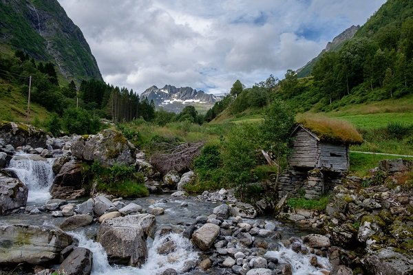Langs elven her er det masse fine "leirplasser" som man kan slå opp telt og brenne bål. Lett tilgang til både vann og ved. Vil virkelig anbefale turen innom her. Det er topper så langt øyet kan se. Det er noe helt eget med Sunnmørsalpene. Jeg fortsetter helt opp til Steinstøylen, her står det flere biler parkert og to damer driver å kler seg for tur. Her må de da være fint å starte turen fra?