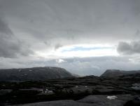 25. juli. I en skråning vest for Vistfjellet. Regn, vind og bratt ur...Tung sekk... Beslutningen blir tatt: "Jeg skrår mot vest". Det har regnet hver dag fra jeg la ut fra Mosjøen med 25 kg på ryggen og et i overkant optimistisk håp om at værmeldingen ikke stemte helt. Det gjorde den selvsagt. Det hadde blåst hunder og katter, sekken var fortsatt tung, terrenget ulendt så jeg bestemte meg for å gå i retning av Innervisten og Bønå gård. Der kunne jeg være på en dag eller to om jeg ga full gass. Jeg tok meg godt tid. Bak meg hadde jeg lagt Sørvassdalen, gått opp til et tjern, overnattet der og fisket litt i den lille timen godværet varte (fikk en liten fisk). Gikk videre til nok et tjern, før jeg tok avgjørelsen om å droppe å forsere fjelltopper i tåken og skrå mot vest i stedet. Burriejarvie hadde mer vær å by på. I månelandskapet blåste det visstnok stiv kuling den natten. Men Hilleberg Soulo-teltet sto fjellstøtt, slik det hadde gjort hele turen. Heller ikke var det noen problemer med kondens eller fukt. Viktig når man tilbringer såpass mye tid i teltet. Dagen etter gikk jeg til Krongelvvatnet. Der var Odd Bønå som har blitt udødeliggjort i Marus Nergaard Pettersens bok på plass og snekret på en gamme. Der skulle det komme en gjeng ungdommer ut på kvelden, så jeg slo meg til ut på en odde ved vannet. Tidenes leirplass! Etter en hyggelig kveld med skuffende lite napp, ble det å gå dagen etter ned til Bønåvannet. Veien ned hit er ikke barnemat, du går i ur langs en foss som må krysses en fem-seks gang. Brukte sikkert to timer på 300 meter.. Men å komme ned til Bønåvannet var som en drøm. Det var nesten vindstille og overskyet, ikke regn. Bål ble fyrt opp og fisket forsøkt. Til tross for masse vak var det skuffende lite napp. En ørret gikk til slutt på en tørrflue, men slapp unna. Dagen etter var det bare å pakke sammen leiren og rusle inn til Bønå villmarkssenter, der jeg ble utrolig godt mottatt av Odd, Margit og Ole Arnold Bønå. Sønnen har overtatt den daglige driften av stedet og er akkurat like hyggelig og gjestfri som sin far. Hit må jeg tilbake! Kort sagt var det en kjempetur, selv om den både ble kortere enn planlagt og med dårligere vær og fiske en man kunne ha håpet på. Neste gang pakker jeg sekken lettere. Takk til Kjell Iverher på forumet og Marius Nergård Pettersen for råd og hjelp i forkant av turen. Om jeg skal tilbake? Hva tror du?1 poeng