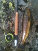 Min spede start på fluefiske startet da jeg rappa stanga til far min nå jeg var 12. Noen uker etter at den var plassert tilbake på plass i boden kom spørsmålet om "noen" visste hvorfor snøret plutslig så ut som piggtråd. Etter dette ble det egen stang og jeg begynte så smått å binde fluer. Dette vedvarte vel frem til ca 18 års alder og siden har det ligget brakk. I sommer tok jeg frem min første fluestang, pakket sekken og leide meg en kano som ble hevet på biltaket. Nye fortommer, tørrfluer og andre småsaker var handlet inn. For å oppsumere kort kom "kicket" med fluefisket tilbake. Speide etter vak av storfisken, prøve å presentere flua og når det i tillegg viser seg at huggene også kom, ja da....da begynte jeg igjen med fluefiske. Frem til neste sesong tenkte jeg da også å leke litt med fluebinding igjen. Alt har praktisk talt gått i glemmeboka så jeg lurer på om det er noen som vet om noen gode sider på nettet hvor tips og triks blir presentert. Fremgangsmåter på fluer er også av interesse. Det finnes jo på youtube, men vil gjerne også sitte og lese med tilhørende bilder. Generell informasjon om fluefiske for nybegynnere vil også komme godt med da både kunskap og prestasjon er rusten. Til slutt.....noen tips om gode bøker som tar for seg emnet? På forhånd takk! Eneste bildet jeg hadde tilgjengelig nå fra turen hvor mine første ørreter på tørrflue ble tatt på 15 år. Mvh1 poeng