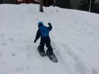 Da var det på tide med telt tur,starta forberedelsene "lovlig" seint dvs på fredag kvelden,fant da ut att jeg manglet diverse deler til nordpulken min,tenkte nok er nok nå gidder jeg ikke den pulken mere og kjøper nye. (kort sakt manglet jeg bare noen små ting som fester stagene sammen men dem har knekt flere ganger på tur pga får kaldt overlever ikke natta virker det som) Enten der får på XXL med fjell pulken barne pulk til 2799 kr som jeg ikke syns var så ille så var resten av pakkingen ferdig rimelig fort. Dama hadde og syd en lakenposen som fungere slik att den er 100% vanntett, siden jeg har frisk i minne hvor mye det koster og levere soveposer på rent etter "ulyker". var veldig spent på hvordan den her ville fungere Siden det var "kom deg ut dag " på søndag 3 på Sæteren gård (http://komdegut.turistforeningen.no/activity.php?ac_id=46408&fo_id=6762) så tenkte jeg att det ville vært fint om turen ente her,så vi kjørte opp til Skytterkollen som er ca 3km og gå til Sæteren gård og satset på og finne en plass og slå opp telt mellom her og Sæteren gård. Første overraskelsen kom når jeg gikk ut av bilen og tenkte og ta noen finer bilder,fikk da "memmory card error" ahhhhh perfekt tenkte jeg prøvde og formatere korte ingen nytte,problemet var vel att jeg hadde tømt kamera og formatert korte på pc før jeg reiste og bare "nappa" ut korte. så da har man kun mobil tlf til og ta bilder med,og siden smart tlf varer ca 5 timer i bruke på vintertid ble det dessvere ikke så mange bilder (har med 1 Samsung S3 på tur og en nokia type gammel som varer i 2 uker på tur med svart/hvit display kjekt med tviling sim smart tlf er nesten alltid av) Starta og gå fra parkering plassen og det var mye folk i løypene junior var ikke spesielt intrisert i og gå på ski og var sliten (noe jeg føler han er mere og mere til eldre han blir) satt litt på pulken (som fungerte som transport pulk uten noe mere funksjoner) gikk litt på ski men ble ikke stort. Etter og ha vært ute i ca 1 time så var han så klart sulten,var jo veldig lurt og ikke spise mat før man reiser hjemmefra,hjelper pent lite med etter påklokk skap. Så spør jeg om han var kald,og joda han var litt kald og,så da slo vi opp teltet rett ved siden av en fin liten bakke,telte kom opp rimelig fort,var veldig glad jeg hadde montert innertelte kvelden før da det var en del laus snø og junior hadde ikke stort tålmodighet "pappa jeg har lyst på pannekaker skal vi spise snart" skal ikke ta noe annet og spise da? "nei jeg hadde tenkt meg pannekaker jeg" fikk laget pannekaker og satt opp telte ferdig så overraskende spør han pappa hvor er den nye soveposen min da? jeg vil ha lynet mcqueen soveposen min,fant den og ga den til han,han tok den på seg veldig fort og satt fornøg og spise panne kaker,spise selv en pakke real turmat litt mere energi (bilde her er fra når vi river telte har ikke stått så dårlig hele natta) Plutselig ble klokken 19 og han var veldig trøtt ringte hjem og sa alt var bra før vi la oss til og sove våknet rundt 00:30 rimelig trøtt av en luring som starta og bli veldig urolig (vi deler en stor soveposen så merke fort når han er urolig) tenkte først å nei,ikke si han har fått problemer med vokse smerter som han har hat en del av i det siste,spurte han var det var,sa han måtte tisse,hadde heldigvis gjort klar en tisse flaske (tom eple juice 0.5 liter med stor tut) fant fram den og han tisset i den i soveposen uten uhell og sa natt og vi la oss til og sove igjen,jeg våket først rundt 07:30 og ikke så lenge etter våknet han og,han spurte da "pappa er det morgen nå" jeg smilte og sa ja nå har vi sovet lenge er vel på tide og stå opp nå,ja det syns han og..... Spurte om jeg skulle lage noe mat til han,"ja du kan lage panne kaker og så kan du varme opp telte mens jeg vente her i soveposen" snakk om og bli godt vant Fristet veldig mye og tenne opp simerlighten i teltet men tok den eller ut,fikk godt varme i den og tok den inn i telte igjen,så spise vi frokost dvs han panne kaker og jeg litt polar brød,han spiste og litt sjokolade og koste seg. Ringte så hjem og sa att alt går bra, og att vi snakkes snart på Sætern gård,dama skulle komme opp der sammen med han på 7 mnd. Sjekket ski skoa hans og det var tydeligvis att de skoa her ikke var egnet får og stå ute i -10,harde som stein så var glad jeg hadde tatt med noen "vanlige" sko til han og. Gikk ut og akte litt i den lille bakken som var ved siden av der vi slo opp telte,det kom veldig mange på ski etterhvert små og store,flere var veldig imponert over att vi hadde sovet i telt,men den beste kommentaren var nok gutt på ca 6 år :"mamma har de sove i telt?" "mor:nei det tror jeg ikke har dere det? junior sier stolt "ja det har vi!" så sier han gutten på 6 år "mamma kan vi og sove i telt ute på vinteren?" får da svar tilbake "nei! gå videre nå!" ikke alle som hadde lyst til og sove ute på vinter nei Spurte så om vi skulle pakke sammen telte og møte mamma og lille bror,før jeg fikk gjort så mye mere fant han spaden og starta og ta opp snø pluggene, Tok opp alle mens jeg pakka i pulken. Blir fort rot i pulken,kjekt med pakkposer type vantette soveposen aleine tar sikkert 90 liter volum aleine (men veldig bra da) Turen gikk så til Sæteren går og var vel der rundt 12,har var det fult av folk og god stemning,gikk inn og kjøpte oss en vaffel og traff mang andre koselige tur folk,så kom mamma og lillebror må si jeg ble veldig imponert over hvordan det var lagt opp,var både aking og heste kjøring og truge gåing og mange flere ting,syns DNT gjør en utrolig bra jobb,Truger.no hadde sponset mange trugre og var flere jeg snakket med som ville kjøpe truger til de små fikk og en liten "kopp" i gave fra DNT når man hadde fullført en del konkurranser dama kom da fort med kommentar "dumt han aldri får ha den her med på tur da er vel får tung og stor den her" noen ganger lurer jeg på om jeg drar ti