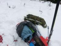 Og 20m/s vind inn på skrå tåler scarp1 også fint - dog med skjerming med noen flak skaresnø (som fantes på isen - dagen før)... Når det blåste som værst var det kjekt å ha to fortelt. Et å fiske i og et å legge fisken i3 poeng