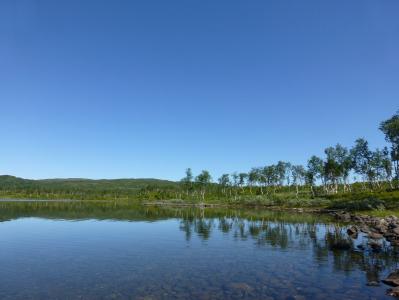 Med Sir Lunchalot på tur i Børgefjell nasjonalpark 22-26 juli 2013. Mandag morgen er her og jeg er oppe for å gjøre siste rest på aluminiumskanoen som etter å ha ligget med ødelagt kjøl i mange år endelig har fått sin etterlengtede overhaling. Vi krysser alle fingre for at kanoen er sjødyktig, og at den vil holde noen harde dager i fjellet. Vi får pakket siste rest av pakningene, maten kommer på plass og ellers det vi tror vi har behov for. Ikke overraskende pakkes også ned diverse ‘kjekt å ha’- ting, som vi helt sikker kunne lagt igjen hjemme, i hvert fall i min sekk.. Etter frokost laster vi opp på bil, får kanoen på taket og kommer oss i veg mot Børgefjell nasjonalpark, kun med en kort stopp på Steinkjer for å kjøpe litt smør og padleårer til kanoen. Det får vi nok sikkert bruk for! Etter litt om og men falt valget for turområde til Børgefjell. Selv har jeg ikke vært i området før men min bror, Martin som er min makker på turen, har vært i Børgefjell og kunne på forhånd bekrefte at det var et fantastisk område. Været har til nå vært av typen elendig sommervær, og vi har avventet med tur til godværet var på vei inn. Nå sies det i alle fall at vi skal få godt vær i uka som kommer, men det gjenstår å se. I dag har vi i hvert fall været på vår side. Sola steiker, og vi har fire timer i bil foran oss. Det går fint, vi vet jo hva vi har i vente. Turen er planlagt relativt godt, samtidig som vi er forberedt på å måtte gjøre vesentlige endringer om kanoen skulle finne på å ta inn for mye vann. Det vil si… Vi har vel ingen plan B, men det finner vi ut av. Vi er i fjellet, vi er på tur, vi gir ganske blankt i hva klokka viser, og vi har all verdens med tid. Vi tar det som det faller seg, Hakuna Matata! Siste klargjøring før vi sjøsetter! Vi ankommer innfallsporten til nasjonalparken i Naustervika ved Namsvatnet i sør litt utpå ettermiddagen. Selve Namsvatnet er ikke en del av nasjonalparken, men veldig mange tar denne veien inn. Det går båttransport inn til enden av vannet, noe vi naturligvis ikke benytter da vi har vår eminente kano med oss. Vi får kanoen ut, laster opp, og starter på første etappe. En drøy mil med padling venter før vi går i land rett vest for Reirtangen. Herfra spenner vi oss foran kanoen og traver oppover lia retning det nederste vannet i Storelva, lokalt kjent som Kamelen. Vi finner teknikken raskt, og får en riktig så effektiv forflytning med storsekk på ryggen og kanoen festet i sekkens magebelte. Det er slitsomt, men det går. Og ingen av oss forventet at det skulle bli noen lett tur, noe som heller ikke var intensjonen, overhode. Vi nærmer oss vannet, og ser vannoverflaten der nede. Det er noen gode høydemeter ned dit. Meget gode. Vi forsøker å bære kanoen ned en steinete sti som følger skrålia bortover, men innser at det blir tungvint. Etter noen vurderinger på hvordan vi skal få kanoen helberget ned, får vi øye på et lite åpent felt rett ned mot vannet, og vi tenker umiddelbart det samme. Hvorfor ikke.. Det er meget bratt. Jeg overdriver i hvert fall ikke om jeg sier omtrent 45 grader helling fra vannet. Vi kjører på, bremser kanoen med tøylene, og i løpet av et øyeblikk er vi på vannet igjen. Effektivt! Vi padler på ut fra land for å rømme bort fra mygg og andre ulumskheter, før vi roer ned og ser oss om etter en fin camp for natta. Etter å ha funnet et godt sted, kort fra den strålende vakre fossen i nordenden, slår vi leir. Vi fisker litt, uten hell, spiser litt tørrfòr, og kryper godt ned i soveposene. Camp første natt Fra elvekanten ved første camp Dag to våkner vi til strålende vær, og et stk alt for varmt telt. Vi har et godt stykke foran oss i dag, så vi pakker sammen relativt tidlig. Før vi setter i gang etappen for fullt, tar vi en liten joggetur ned til en kirke vi fikk øye på i går. Det er merket på kartet som Kristi Krybbe, og viser seg å være et lite kapell, som er privat eid, påbegynt bygging i 1952 og ferdigstilt i 1959. Vi får noen historier ifra en meget hyggelig eldre herremann som tilbringer det meste av sine somre i den tilhørende hytten, og rekker også å få et godt fisketips, som for øvrig ikke hjalp oss så mye, før vi returnerer til kanoen og fortsetter på dagsetappen; ‘’det gjelder å vite hvor fisken står, og når den står der’’. Vi vandrer med kanoen på slep opp til Djupvatnet, hvor vi på nytt nyter det fantastiske landskapet før vi sjøsetter. Vi nyter vær og natur mens vi padler nordover, og etter en lunsj på en idyllisk liten øy i den nordre delen av vannet begynner vi på videre stigning og forflytning både til lands og til vanns nordover langs elv og vann opp mot Blyvatnet og Jengelvatnet, som er vårt mål for dagen. Vi har stadig fiskestanga ute så lenge kanoen er på vannet, og etter en god del timer med kroken i vannet begynner vi å synes at fisket i Børgefjell er noe oppskrytt. Vel oppe på Jengelvatnet finner vi et fint sted ved utløpet til elva som går videre inn i nasjonalparken hvor vi slår opp teltet, og gjentar rutinene fra gårsdagen med fiske og mat før vi tar kvelden rundt midnatt. Særdeles lite fisk å få fortsatt. Det som så vidt er nevneverdig er vel en liiiten stekeklar ørret. Morgenfiske like ved camp! Nydelig utpå den lille øya midt i fossen! Kristi Krybbe, Kapellet vi besøkte dag 2. Før sjøsetting ved Djupvatnet. Vakkert. Onsdag! I dag er det vi velger å kalle hviledag. Vi satser på å bli her hele dagen, uten flytting av camp. Med hviledag menes i denne sammenheng litt i underkant av 8 km fottur med fiskestang før lunsj og omtrent 9 km topptur til en av 1000meterstoppene i nærheten, nærmere bestemt 1096m, før middag. Etter frokost og et morgenbad går fisketuren fra camp ved innløpet til Jengelvatnet, opp til Kyllingen på ca 770m, østover over ryggen mot Store Kjukkelfjellet i sør hvor vi passerer på omtrent 940m, og ned lia mot neste vann p