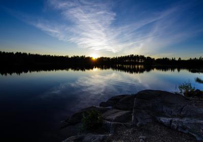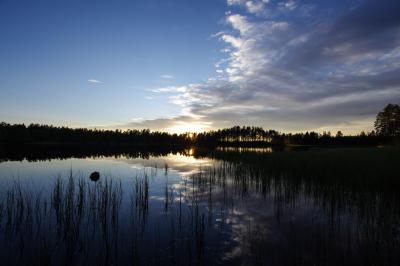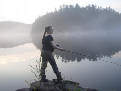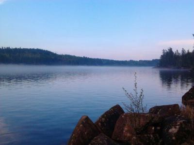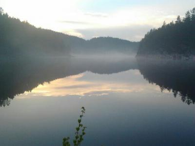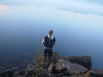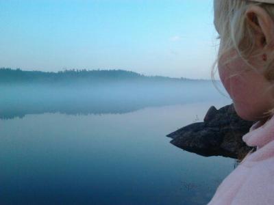 Dette er fra en tur jenta mi og jeg hadde tidlig i vår. Snøen hadde nettopp forsvunnet, varmen hadde så smått begynt å komme og alt begynt å bli grønt og deilig. Vi var sultne på en tur med overnatting! Bestemte oss for Langvann her i Hurummarka. Min plan var å gå fem km innover på bred og god sti. Men på veien opp traff vi naboen, som har vokst opp her og er så og si lommekjent i marka. Han tipset oss om en litt kortere vei, på andre siden av vannet, hvor det i følge ham ikke var noen folk. Så vi la i vei....det tok sin tid før vi fant frem til en fin plass, for han som er lommekjent i skogen tenkte nok ikke på at for oss som er helt ukjente kunne det være atskillig vanskeligere å finne frem. Vi ble overrasket av tordenvær underveis, snuppa ble LIVREDD! Det skrallet bra rett over oss. Og siden det var meldt blå himmel, hadde jeg tatt sjansen på null regntøy. Men hadde tatt med paraplyen til snupp, og selv sto jeg med regntrekket til sekken over meg. Slik sto vi under et grantre til tordenregnet hadde gitt seg. En opplevelse det også! Omsider fant vi frem...og så fint. Stille, fredelig, rolig. En fossekall (tror jeg) som fløy lavt over vannet, hit og dit, sang og hadde det travelt. Noen bilder fulle av stemning: Altfor tidlig for fisking...det vaket, men null napp. Vi koste oss. Snuppa kjedet seg overhodet ikke. Hun gikk rundt og trallet og sang, fisket litt, tittet på en padde som solte seg, latet seg nedi graset i vannet og fant mat. En kano med to mennesker i gled stille forbi i kveldståken. En veldig deilig og avslappende tur.1 poeng