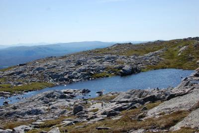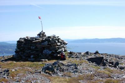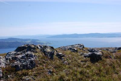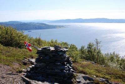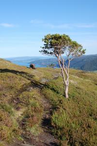 Her er noen bilder fra fineste turen jeg hadde i sommer! Start: På vei opp til Landrøsheia fra Lensvik, ser Trondheimsfjorden med Hurtigruta! Første halvtimen er BRATT klatring gjennom tett bjørkeskog, før denne utsikten åpenbarer seg. Sørvarden, den påtreffes etter ganske kort marsjtid. Noen utsiktbilder Traff på disse herlige fristelsene...disse var dessverre ikke modne. Men det var denne! Den var akkurat så god som den så ut som. Fant flere andre også. Namnam! Ivo Caprino-landskap så langt øyet kunne se. Vestre Varden! Stått her siden vikingtiden En enslig furu Denne ble ikke til en prins, dessverre- Undertegnede1 poeng
