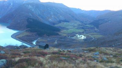 Blåfjellenden fredag 10. oktober. I tidligere år har vi hatt som oppgave på høsten å ta inn brua rett nedenfor hytta. Med permanent bru på plass, er denne jobben ikke lenger nødvendig. Men det hindrer oss ikke å ta turen innover. Det ble litt frem og tilbake hvem som ville bli med. Broderen med sitt barnebarn Ådne var nesten selvsagt. Det er blitt en tradisjon at de tar turen innover heia på denne tiden. For broderen markerer turen avslutningen på sesongen for året. Vi fikk også med oss Bernt. Hva gjorde vi før mobiltelefonens tidsalder? Det ble en del frem og tilbake før alt var avtalt og oppgaver fordelt. Været er viktig på tur. Denne helga var værmeldingen ekstraordinær god. Sol, varme og lite vind i midten av oktober, i heia, er ikke vanlig. Snarere tvert i mot. Jeg så fram til en fin tur over heia fredags ettermiddag, og forventningene slo mer enn til. Det ble en av de turene som bør huskes for det fine været. Det er jo ellers slik at det er ekstremturene som huskes. Dette var ekstrem vær. Men helt i andre enden av skalaen. Vi tok det virkelig med ro. Og nøt dagen, været og det å være på tur. Det ble en liten stopp både ved Fossebekken og ved Saftbekken. Vi møtte en jeger, han på vei ned fra heia, og vi opp. Han hadde sett fugl, men ikke fått noen. Vi regnet med at det ville være folk på hytta. Det var spor i sorpa, og vi hadde hørt at det var folk på vei. Inne på hytta ble vi møtt av to voksne par. De hadde tatt turen innover i det fine været. Slik jeg forsto det var det egentlig den første turen de var på sammen til en ubetjent turisthytte, og etter hva jeg forsto, ville det ikke bli den siste. Det fine været var jo et lykketreff for disse. Vi installerte oss på hytta, og etter hvert kom det en del folk. Hyggelige folk. Vi fikk en svært kjekk kveld og morgen. Det ble raddel og fellesoppvask. Det var også et yngre par, han fotograferte, og hadde egen blogg, og hadde vært mange plasser i Rogaland. Det er alltid hyggelige folk i heia Vis hele artikkelen slik den er på hjemmesiden1 poeng