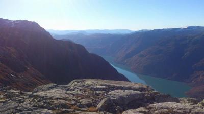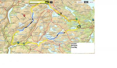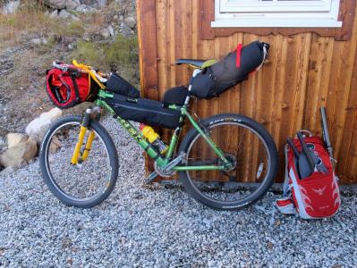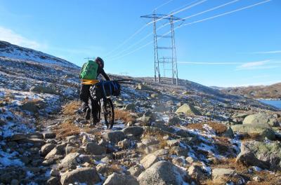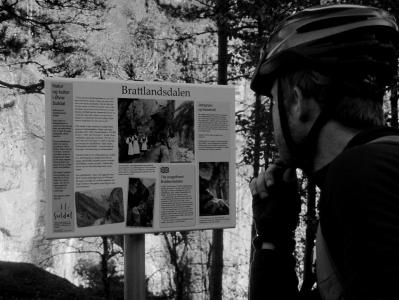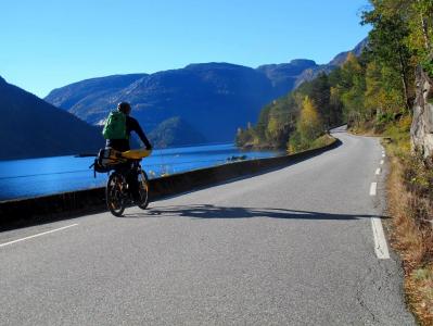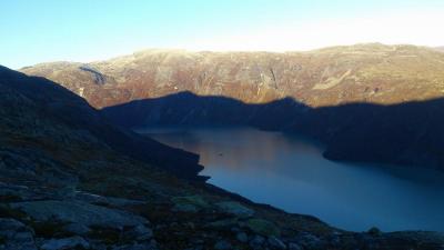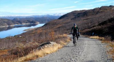 Kombinasjonen av en rolig nattevakt, og en norgesatlas kan lett føre til sterk fjell-lengsel. Det gjorde det også denne gangen. Med lengsel i både kropp og sjel, tok jeg en kikk på kartet over Haukeliområdet. Dette er en plass jeg har gått veldig mye tur, men har ikke sett så mye på kartet utover de vanlige stiene og fjelltoppene. Etter litt kikking, gikk det opp for meg at det gikk annleggsveier nesten sammenhengende fra både Bykle, Hovden og Haukeli, og over til Suldalsområdet. Med sykkel og packraft (liten oppblåsbar båt), burde flere av disse rutene være ganske greie Jeg gjorde en smådårlig jobb i paint, og hadde planen klar. Turen skulle starte noen kilometer fra Haukeligrend, gå via Førsvatn og Holmavatn og ned til Nesflaten i Suldal. Om vi fikk tid, tenkte jeg vi eventuelt kunne returnere via en annleggsvei, over noen vann og komme ut igjen ved Dyrskar. Vi startet med friskt mot. Da veien etterhvert ble litt smådårlig, gikk vi ned til Langesæ for å blåse opp båtene. Langesæ var flatere enn et vellagt stuegolv, meget harmonisk å padle over.. Etter Langesæ er det flere småvann, med relativt korte bæringer mellom. Det var litt styr å skifte mellom sykling/gåing/padling, men vi kom i iallefall fremover. litt utpå kvelden kom vi endelig til Holmavatn, som var den lengste padleetappen vi skulle ha. Vi padlet over vannet under en aldeles nydelig stjernehimmel. Vi så såvidt at det var lys på Holmavasshytta, mange kilometer unna, men vår rute gikk lenger sør. Vi funderte litt på om det muligens kunne være søte spreke fjelljenter på Holmavass, men slo det fra oss. Ifølge statistikkene skal det visstnok være mye jenter i fjellet. Vi ser dessverre sjelden noe særlig til disse. Enten lyver statistikken, eller så kan det muligens være det faktum at vi velger utrolig sære ruter, og ligger i telt..Så mulig de er der, men vi leter feil steder? hmm.. Etter den semi-romantiske kryssingen (semi-romantisk siden det muligens var en hel gjeng jenter som så samme stjernehimmel som oss fra Holmavassbu), kom vi frem til neste annleggsvei. Den er sammenhengende hele veien ned til Suldal/Nesflaten. så det var en god følelse å komme hit. Telt ble slått opp og middag inntatt. Nå var det stortsett nedover nesten 3 mil ned til lavlandet. Utrolig nydelige høstfarger, å fantastisk varmt i solen. Den "britiske" sykkelstilen er kun til ære for fotografen, vi holdt oss stor sett på rett side av veien. Og for å ikke stresse leseren for mye, forbudt-skiltet gjaldt en gangsti.....tror vi.. Etter å ha kikket litt på klokken, og kartet, bestemte vi oss for å droppe de 900 høydemeterene opp neste annleggsvei, og heller ta strake veien til Røldal. Valget var nå enten å bruke resten av kvelden på å sykle opp igjen til Haukeli, eller å hente fram redskapen min. Jeg valgte det siste. En vellutviklet tommel har hjulpet meg på mang en tur. Jeg slengte ut tommelen, og fikk etter litt skuffelser, haik hele veien tilbake til bilen. Kjørte så ned igjen til Røldal for å hente kompisen min og syklene. Planen for kvelden var nå stampen på Haukeliseter. Vi nådde stampen i god tid og hadde en bra kveld med varm stamp og kald øl. Jentene var ikke å se, men vi fikk servert mye gode røverhistorier fra blant annet safari i Afrika. Lærte blant annet at White Rhino egentlig heter Wide Rhino (pga dets brede nase), men at språkproblemer hadde ført til at alle trodde det het White Rhino. Når en da skulle navngi det neshornet som har smal nase, kalte de de likesågodt black rhino, siden det var "motsatt" av white rhino. Skulle vell egentlig blitt kalt Narrow Rhino eller noe slikt..menmen, sånn kan det gå. Uansett, neste dag tok vi turen til Prestegård, og gikk opp til Hermodshåla. Ei ganske stilig grotte, med meget smal inngang. Oppkalt etter en kjeltring som het Hermod, som skal ha gjemt seg i hulen. Etter grottevandringen, samt litt guiding og lyktlåning til en familie som dukket opp, syklet vi ned til bilen og satte vi kursen vestover, hjemover. Finnes ordet "eventur" i ordboken? Isåfall vil eg påstå at det hadde vært et passende ord for å beskrive denne helgen Snipp snapp snute..Det er best å være ute.11 poeng