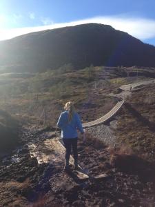 Yess, 13 åringen er i mood'n, og sier ja til tur en lørdag! Etter litt undersøkelse om ruta,parkering osv, smører mor mat, pakker klær og sørger for nok bestikkelser og motivasjon i sekken. Har bestemt seg for å koke for første gang i friluft ( nei, er absolutt ikke vokst opp i en friluftsfamilie ), så turen innebærer også en stopp på en sportsbutikk for innkjøp av gassbrenner. Vel parkert ved Borstadsætra setter vi avgårde. Kommer oss inn i skogen, og opp bærer det mens sola tørker opp tåka på fjellet. Vi puster og peser litt mens vi går oss varme og skitne, forferdelig gjørmete oppover, må ha regna litt i Trøndelag tidligere i uka?! På vei opp møter vi en mann i høyt tempo- slår av en prat og får ihvertfall bekreftet at vi er på rett vei. Oppe på den første flata kommer vi til ei kul hengebru. 13 åringen skeptisk, så mor må gå først. Hun følger etter, men jeg er nok verdens teiteste mor da jeg leker Bukkene Bruse, og sørger for at brua svaier litt mere enn hun liker. Sola varmer godt nå, så et stykke etter brua må man av med litt klær, og vi finner ut at det er leeeenge siden frokost. Et rundstykke blir fortært, og med litt ny energi tusler vi videre. Mor synes hun hører sauebjeller i det fjerne, men 13 åringen sier det er skoene mine, for de irriterte henne grønn på forrige tur i Sylene. Hm, jeg sier nå at skoene mine høres ut som ei gås når de knirker, og at de dessuten bare knirker i nedoverbakke. Det er en fin dag å være på tur. Klart og småkjølig, men sola som brøt skikkelig gjennom sørger for at vi holder oss gode og varme, vel........det gjør stigningen også da. Etter en tid begynner litjtuppa å bli lei- kneet gjør vondt ( meniskoperert i mars, men det gjør nok litt ekstra " vondt " når man er sliten ), og det hjelper ikke hvor mye sjokolade og godis som finnes i sekken. Til forskjell fra yngere barn som man kan avlede, blir en tenåring DRITTSUR- og den er verre...... Jeg bestemmer meg for at ok, vi går litt lengere opp så vi bare ser hvordan ruta opp " eggen" går, så tar vi kakaopause der, og vil du ikke gå videre sier jeg, så snur vi. Fram med gassboks og utstyr, iiiik. dette er spennende! Eh- mor blir flau og taus da frøken 13 åring kan fortelle at sånn og sånn gjør du, for slike bruker vi i naturfagtimene på skolen! Jaja, man trenger jo ikke være rakettforsker for å få til det der, jeg er bare skikkelig skikkelig skeptisk til gass- men boksen skrus på, og det blir flamme uten eksplosjoner og brannskader Vi tilbringer en halvtime i sola, koser oss med kakao, og er enige om at det er den beste kakaoen ever. Ved spørsmål om hun har lyst til å gå videre, det er jo ikke så veldig langt igjen, er svaret som følger: Jeg har egentlig ikke lyst mamma, men har ikke lyst til å skuffe deg, jeg vet jo at du liker å nå målet ditt. Mammaen får flashback fra skiturer som pike- søndager som skulle tilbringes med start Byåsen Butikksenter, til Elgsethytta og ned igjen. Alltid. Hver søndag. Og det var ikke kosetempo, for man måtte jo rekke søndagsmiddagen kl 16. Jeg har den dag idag ikke noen skiglede, og det er jo litt trist. Kjære jenta mi sier jeg. Vi har jo hatt en strålende tur. Den der fjelltoppen ligger der neste uke, og neste år. Nå pakker vi sammen og tusler ned, se- nå kommer tåka også ( det gjorde den også ), og jeg tør ikke å gå i tåke. Smilet til tenåringen er priceless, vi pakker sammen gass og søpla vår og starter gjørmeskliinga nedover. Hm, der var den der lyden igjen....og det er IKKE skoene. I det fjerne ser jeg 3 sauer. Jeg lurer på om 13 åringen har hørt historien om isbjørnen som ble igjen her etter istida? Eh.....nei sier hun, mamma det finnes jo ikke isbjørner her vettu. Å joda, mange som påstår at de har sett den her oppe, noen har har faktisk gitt den et navn også, den kalles Pelle. Jeg lager en lang historie om Pelle, veldig glad for at jeg går først der jeg går og småflirer. SE! Der, bak de trærne- ser du det hvite som rører på seg? Der er Pelle!!!! Dessverre klinger bjellen på sauen, så da blir spøken utbrodert med at Pelle flyttet til Kristiansand etc etc......jaja, morro har vi det på tur ihvertfall. I de siste bakkene ser vi en mann som veiver med armene oppe på en høyde. Må være han vi møtte på vei opp, vi vinker tilbake. Og joda, etter ei stund kommer han joggende ( med staver, var sikkert ok på glatta ), og vi får ihvertfall bekreftet at Ruten i tåke ikke anbefales. Tilbake til bilen må gjørmete sko i poser, og mor får beskjed om å skyndte seg å kjøre mot sivilisasjonen så det blir nett på telefonen- sukk...... Ruten i Hemne er en flott tur for stort sett alle. Ikke for bratt, og ikke vanskelig. For oss byfiser fra Trondheim er distansen fra byen til landet veldig overkommelig. Den eneste ulempen er vel at det stort sett bestandig er gjørmete for du kommer opp til ura. Men.......vi hadde en fin tur. Jeg kan nå koke meg mat i naturen.Og- jeg fant en super teltplass, men det var da altså ikke aktuelt for tenåringen. Kanskje hun var redd for at isbjørnen Pelle skulle komme og ta henne?1 poeng