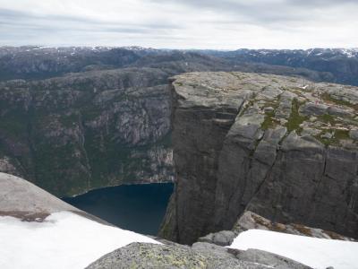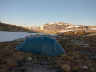 De siste ukene har det vært mye godvær i Stavanger og jeg regnet med det at smeltet så mye snø i Frafjordheia at det var mulighet for en litt lengre tur. Pakket sekken for 3 dager og med litt lettpakking i bakhodet klarte jeg å få den ned i 12 kg inkludert mat og brensel. Ikke akkurat kjempelett, men har litt å gå på både på telt og ryggsekk. Lørdag formiddag startet jeg fra Hunnedalen og første etappe gikk inn til Blåfjellenden. Har var det fine forhold. Ganske tørt og fint i første del og vekselsvis litt snø på den høyeste biten. Været var helt upåklagelig og nesten litt i varmeste laget. Traff et par på vei tilbake fra Blåfjellenden og gikk forbi en barnefamilie som skulle innover. Var også en spreking som tok meg igjen som jeg hadde en liten prat med på Blåfjellenden, en av hytteierne som bare var inne på dagstur. Fra Blåfjellenden gikk jeg videre oppover Blåfjelldalen. En vakker plass jeg ikke har gått før. Veldig fint å gå første delen og det var ikke før de siste kilometerene opp mot Langevatn at det begynte å bli endel snø. Snøen bar godt for det meste, men klarte å trø nedi en grop ved siden av en stein som jeg ikke så. En del snø den siste biten mot Langevatn På Langevatn var det 5 stk når jeg kom. Noen hadde gått inn fra Lyseveien, mens to stk hadde gått fra Flørli og samme vei som meg den siste biten. Gikk en liten kilometer videre mot Kjerag før jeg slo opp teltet for kvelden. Søndag morgen var jeg oppe tidlig og la i vei videre mot Kjerag. Mye snø innover og valgte å gå over selve Kjerag massivet istedenfor å følge dalen hvor stien gikk hvor det lå veldig mye snø. Kom ned på andre siden av nesatindene og det var endel sprekker i snøfonna over til Nesatindene så jeg tok ikke sjansen på å gå ned der, og gadd ikke ta omveien for å komme trygt rundt så nøyde meg med et par bilder fra motsatt side. Turen tilbake til Langevatn gikk samme veien og etter en liten matbit ved Langevatn gikk jeg videre mot Sandvatn. Veldig mye snø hele veien mot Sandvatn og det ble en dryg etappe og flere omveier for å finne gode plasser å gå. Det som egentlig burde vært gjort på rundt 3 timer tok over 5. Ved Langavatn håpet jeg at broa var på plass eller at det skulle være mulig å krysse elva, men ingen av delene stemte. 3 stk hadde gått samme turen antageligvis dagen før og jeg så de hadde valgt å krysse isen på Sandvatn. Det så ikke veldig trygt ut, men når eneste alternativ var å snu så måtte jeg bare ta sjansen. På med skalljakka og dyttet liggeunderlag under jakke og klar til å bruke stavene som ispigger om det skulle gå gale. Men heldigvis bare isen og jeg kom meg trygt over. Hadde lovet kona å være tilbake ganske tidlig på mandag, så istedet for å slå opp teltet og måtte opp grytidlig for å ta siste etappen valgte jeg å gå helt ut. Var veldig mye snø hele veien fra Sandvatn til Hunnedalen og det var ferske skispor nesten hele veien. Tipper de har sluppet unna med å bære skiene kun 10-20% av strekningen. Var ikke før den siste bakken ned mot veien det var helt snøfritt. 52 km og 1626 høydemeter ble en dryg tur på to dager med de rådende forholdene. Var nede veien litt over elleve på kvelden og gikk vel i 20 minutt før jeg var så heldig å få haik ned til bilen min.5 poeng