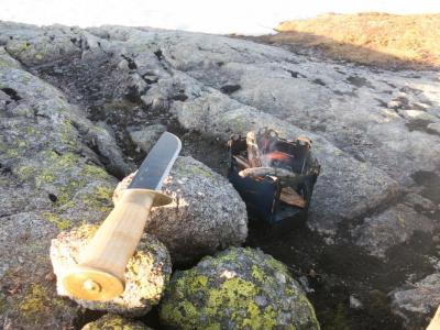 Hallaien! Tenkte jeg skulle skrive en liten oppdatering fra vårt eventyr i nord. Dette blir gjort med iphon-en så det er litt makkete og det blir ikke alt for mye vi gidder å skrive nå. Den første turen var i Pasvikdalen. En meget grei kar med navn Helge hadde ordnet slik at vi kunne parkere bilen vår ved nasjonalparksenteret i Svanvik, der turen skulle ende. Ikke nok med det, han kjørte oss like godt videre til Vaggetem der vi skulle starte. Tusen takk til han og hans fru, jeg blir helt ordløs av slike mennesker som er så snille og behjelplige. Turen fra Vaggetem til Ellenkoia ble en tung etappe, det var fortsatt mye snø og vi gikk til tider med snø godt over knehøyde. Da vi endelig kom til Ellenkoia ble vi der i tre dager for å vente på sommer og snøsmelting. Turen gikk videre nordover langs grensen med en liten tur innom et vann på Finsk side. Sommeren lot vente på seg og det var mye kaldt vær de to første ukene. Vi benyttet oss derfor av de åpene ødestuene i området. Veldig god standard og de hadde rikelig med ved, noe som kom godt med for to kalde vandrere. Dette er hytter som er helt gratis å bruke, noe som varmer hjerte til to sunnmøringer. Siste uken kom sommeren og vi fikk endelig brukt fiskeutstyret, fangst ble det også. Vi var på tur i 20 dager og vi storkoste oss fra dag en. Bjørn så vi ikke, men vi gikk på spor, bjørnebajs og kloremerke på tre. Det mest dramatiske vi opplevde var å bli "angrepet" av to fiskeørner (en smule overdrevet). Vi så ikke andre mennesker på hele turen, så vi følte oss ganske så alene i de dype skogene i Pasvik. Nå befinner vi oss på Neiden fjellstue. Her blir vi et par dager til før vi setter kursen mot Gallokvidda. Der skal det fiskes ørret og vi håper på storfisk. Legger med noen bilder som er tatt med mobilen, ikke så veldig spennende dokumentering. But do not worry, det vil komme rikelig med bilder og tekst når vi får tilgang til en pc. Men det skjer nok ikke før vi er hjemme igjen. Skal se om jeg får blogget litt mer med telefonen etter Gallokturen. Anders og Kathrine. Vi har akkurat begynt turen og er glad for det. Første leir, en snøfri liten oase ved et elveos. Det ble bålkos resten av kvelden. Utsikt fra utedassen på Ellenkoia. Leir ved Kolvatnet, snart skulle det begynne å regne. Herlig leir ved lille Røyrvatnet. Her fikk vi fin abbor. Vis artikkelen på bloggen1 poeng