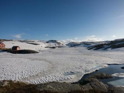 Pinsetur. Pinsen er normalt ikke tiden for heieturer. Den kommer ofte så tidlig at snøen fortsatt knuger landskapet. Og er det ikke skiføre, så i hvert fall ufremkommelig på grunn av snøsmeltingen. Men noen år kommer pinsen så sent at det er mulig med en tur. Jeg har minner fra en pinsetur til Taumevatn, hvor jeg omtrent måtte sove stående etterpå, på grunn av solbrent rygg og bein. Bestyrerinnen har lagt seg til noen uvaner, og skylder på sykdom. Det ville derfor ikke bli et lengre opphold på Blåfjellenden. Men det måtte selvsagt bli i hvert fall en –alene. Jeg gjorde noen innkjøp på torsdagen, og etter en sedvanlig omgang i hjemmet, dro jeg oppover til Hunnedalen. Tørt i bakken, delvis skyet, men med god temperatur. Et særdeles bra utgangspunkt for en tur innover heia. Under 800moh er mesteparten av snøen borte. Det ligger en og annen snøflekk igjen på de vanlige plassene. De kan gås rundt eller krysses. Alt ettersom. Og jeg valgte å krysse noen. Midt utpå gikk jeg gjennom og ned i bekken under med den ene foten. Det lager litt spenning. Over 800moh er det fortsatt store flater med snø. Her er det til gjengjeld så pass mye at det ikke er noe problem å gå på snøen. Det var fortsatt så pass mye snø at bekken øverst ble krysset på snøbru. Det hadde vært folk på hytta siden forrige besøk. Det hadde kommet folk opp fra Mån og noen som hadde gått fra Vinddalen/Røssdalen. Jeg gjorde noen småjobber, men gikk egentlig og lyttet etter flere folk. Ført rundt halvti, hørte jeg noen utenfor. Det var et ungt par fra Egersund som hadde tatt turen innover. De ville videre til Flørli dagen etter. Det ble som vanlig tid til en hyggelig prat før kvelden. Men det var ikke mye kveldslys. Dagslys til rundt 11, og ikke skikkelig mørkt om natten. Våren er en fin tid slik. Bestyrerinnen hadde planer for lørdagen. Jeg måtte komme meg tidlig av gårde. Og med sol inn vinduet klokka 7, var det heller ingen grunn til å bli liggende. Frokost – egg og bacon ble nok en gang fortært i ensomhet. Paret som kom sent kvelden før, hadde trukket for gardinene og kunne ikke se den perfekte dagen utenfor. Det var sol – selvsagt, lite vind og alt varmt. Den lille pytten utenfor soveromsvinduet lå speilblank. Jeg kom meg av gårde før de andre hadde fått gnidd søvnen ut av øynene. Det var et lite problem. Kortbuksa var ikke med. Men en tidlig lørdagsmorgen, kan det ikke være svært mange andre på vei…. Jeg startet i bare boxeren. Hvor lenge tåler vinterbleke legger og lår, sol og snø før de blir solbrent? Litt spenning i livet skal vi jo ha. Nå viste det seg at det faktisk var folk i heia, tidligere enn meg. Folkene på Fidjastølen var på vei inn med sauer, men jeg så bare sporene. De hadde startet klokka 7 i Hunnedalen, var forbi stidelet da jeg kom dit. Og folkene på Blåfjellenden passerte under meg på veien innover. Det var 8-10 stk som fulgte sauene innover. Litt nærmere Hunnedalen ble det en liten stopp for å ta på Gore-texen. Det kom en del folk i mot. En del som skulle inn til hytta, men også noen på dagstur. En skikkelig fin tur. Vis hele artikkelen slik den er på hjemmesiden2 poeng
