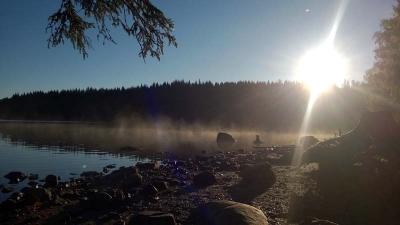 Da var det endelig klart for andre etappe av Jotunheimstien. Monica kunne da fremdeles ikke bli med siden hun måtte være hjemme med vår datter, så jeg fikk med meg kameraten min Tommy. Denne etappen blei det litt forandring på siden vi bare hadde lørdag og søndag til rådighet. Turen skulle gått fra Hakadal, men vi begynte i stedet på Brovoll. Om jeg pleier å gape over aldri så mye så skjønte jeg nå at Hakadal-Lygna blei for tøft for to ferskinger på to dager. Det er da 5.5 mil i skogsterreng. Siden jeg syns Hakadal-Brovoll blei for kort på to dager så sløyfa vi den strekningen enn så lenge. Så får det bli en minietappe senere. Nok om det, etter å ha pakka fredags kveld så var det to forventningsfulle karer som var klar for snaue 4 mil i skogen. Monica skyssa oss til en rasteplass i nærheten av brovoll. Etter litt posering i morgentåka var vi i gang og vi var overlatt til det vi hadde i sekken, jeg kjente det både i rygg og knær etter de første 50 meterene, men med en reduksjon fra 27,5 forrige gang til 21,5 kg nå så måtte det jo bare gå bra Og det gikk over så fort vi hadde fått varma opp litt, så med selskap på tur så var motivasjonen på topp og humøret stort Første vi kom til etter å ha fulgt viltgjerde på E16 og litt nordover etter kryssing var Avalsjøen. Her var det fint. Skulle hatt campa der, men vi følte vel at vi måtte gå litt lenger enn 3 km før vi satt opp camp. Vi skulle jo tross alt gå nesten 40 km På ut.no sto ruten om grusvei og ikke langs vannet. Ruta går langs vannet, men siden det til tider kan være høy vannstand velger vel ut.no og ha alternativet som standard. Da hadde vi gått glipp av denne perlen, så anbefaler alle som skal gå denne veien om å ta sjansen og heller snu hvis det ikke går Sola begynte og bryte gjennom tåka og det så ut til at dagen kunne bli riktig så bra. Vi tok oss tid til noen bilder igjen vi vett. Posering er vel ingen av oss noe spesielt gode på, hehe. Så noen pris for beste bilde blir det vel heller ikke på denne turen ;)Nå begynte stigningen mot Lygna, etter å ha gått nedover fra brovoll var vi på det laveste punktet på turen 351 moh. Og denne gangen var ikke noe annerledes enn stigningene på de forrige turene mine, jeg trodde hjertet skulle hoppe ut flere ganger. Godt at vi nå var to på tur til å motivere hverandre Disse her stoppet jeg og tok bilde av kun for en grunn, og det var for å få en pust i bakken før vi skulle krabbe oss videre opp, hehe Var forøvrig de to siste sauene på tur hjem fra beite for vi så ikke flere på denne turen. Etter å ha fått igjen pusten steg vi ytterligere og forbi en hytte som jeg ikke husker navnet på (sliten) og videre oppover pusta og peste vi så jævlig at vi skremte opp tre ryper. Vi egner oss ihvertfall ikke på jakt hvor man må være stille i oppoverbakker. Vi egner oss kun på post Varmt begynte det å bli også så vi måtte dra opp buksa til shorts begge to Vi fikk også føle vreden til flere minisatan`er (hjortelusflue) Fysj for noen stygge innsekter, beveger seg som en krabbe med vinger.... Men var ikke verre enn at vi klarte og kose oss, var bare en som angrep om gangen Tilsammen på hele turen var det vel rundt 30-40 stk og alle kom iløpet av første del av turen. Nå nærmet det seg mattid kjente vi, gått i mer eller mindre stigning i en mil så kroppen trengte noe næring. Vi var nå på 550 moh så vi hadde hatt en stigning på 200 høydemeter på de siste 4 km. Vi fant en grei plass i sola langs stien og slo oss ned Her blei det kokkelert havregrøt og polarbrød med syltetøy, og et par kopper kaffe Det gjorde susen for energien kom tilbake og vi var på ny klar for å ta fatt på resten av veien. Neste punkt var svartåsen som heldigvis ikke var så mange høydemeter høyere enn lunsjplassen vår, så da fikk vi tilogmed sett litt av stien og ikke bare skoa våres. (Vi hadde en tendens til å se rett ned i tunge partier, hehe) Oppe på svartåsen lærte vi at her hadde Milorg soldater kampskole på slutten av 2. verdenskrig, så tur kan være lærerikt samtidig som det er sunt for kropp og sjel (kjentes absolutt ikke sunt ut i oppoverbakkene....men) Nå hadde også sola forlatt oss og det la seg et lite skylag, men det spilte ingen rolle for det var tilnærmet vindstille og perfekt temperatur og gå i. Terrenget var nå mer varierende og vi kom over et stort hogstfelt og her var det bløtt, skikkelig gjørmehøl hele veien....pent var det heller ikke... Etter hogstfeltet bar det oppover igjen mot øvre høvra, en gammel seter oppi åssiden, her også gikk vi i kjent stil og studerte skoene våre og gispa etter luft. men oppe på sætra var det idyllisk. Slike plasser som bare står der må tas vare på for senere generasjoner. Etter øvre høvra gikk det nedover igjen og nå nærmet vi oss dagsmålet som var vassbråa, og det gjorde ingenting, jeg hadde hatt varierende krampe i beina de siste timene, måtte stoppe et par ganger og tøye og bare få igang blodsirkulasjonen uten og belaste så mye. Når vi kom på grusvei var det ikke langt igjen til camp, men det var et par seige km. Gleden var stor når vi visste at den planlagte campen var 200m unna, skuffelsen blei desto større da den var okkupert....av det som så ut som en enslig camper med campingvogn(!!!) Han satt der på en campingstol foran et stort bål. Så da måtte vi jaggu gå lenger. Heldigvis fant vi en grei plass ca en km lenger borte, så da var skuffelsen glemt på et blunk Campen blei satt opp, bålet blei tent og vi koste oss med Real turmat, øl, sjokolade og tullprat. Og selvfølgelig en telefon hjem Vi kom oss i posene kl 22.00 og 22.30 kom regnet. Det skulle ikke gi seg med en gang, så det fortsatte hele natta igjennom. Kl 08.00 slo vi opp øya etter en god natts søvn. Ihvertfall for meg, Tommy skulle investere i nytt underlag og sovepose sa han, mistenker at det var litt hardt Bløtt var det utenfor og litt innenfor teltet også, m