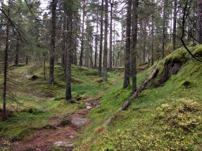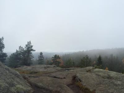 Med en flekstimekonto på jobben som var overfull var det på tide å brenne av litt timer igjen. Altså fri hele dagen, for meg selv! Herlig! I går ble planene lagt til et område som til tross for at det bare er 6-7km i luftlinje hjemmefra, så har jeg ikke vært der på tjue år: Ramstadslottet naturreservat i Østmarka. Unger ble levert på skole og jeg kom meg avgårde ca halv ni fra Losby. Turmålet var toppen Ramstadslottet, med masse omveier og avstikkere og ikke nødvendigvis i merka sti Etter ca to timer nådde jeg toppen, akkurat i det en skoleklasse gikk ned. Flaks her gikk det ned litt suppe fra gårsdagens middag og nok kopper kaffe. Retur gikk via Djupdalen og via Dunderen. Alt i alt ble det femten km med fem timer vandring i følge GPSen min. Litt på sti, litt i bushen og bittelitt på vei. Vått. Tåkete. Småkaldt. Men først og fremst supert! Utsikten var ikke optimal i dag: Lunsjplassen: Fin skog i naturreservatet:7 poeng