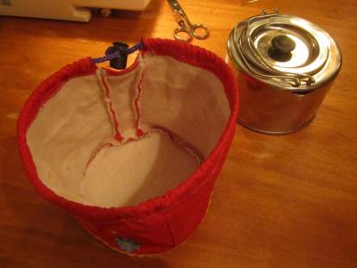 Fin tråd, med masse inspirerende prosjekter, mye flinke folk der ute! Jeg tenkte det kunne være fint med et Turkjele-termo-trekk, så jeg klipte opp en vindtett bukse og en ullgenser fra en bruktbutikk (ca 10kr) og sydde i hop denne: Tanken var vel at den skulle holde litt på varmen i kjelen, har ikke prøvd den enda, så vi får se...2 poeng