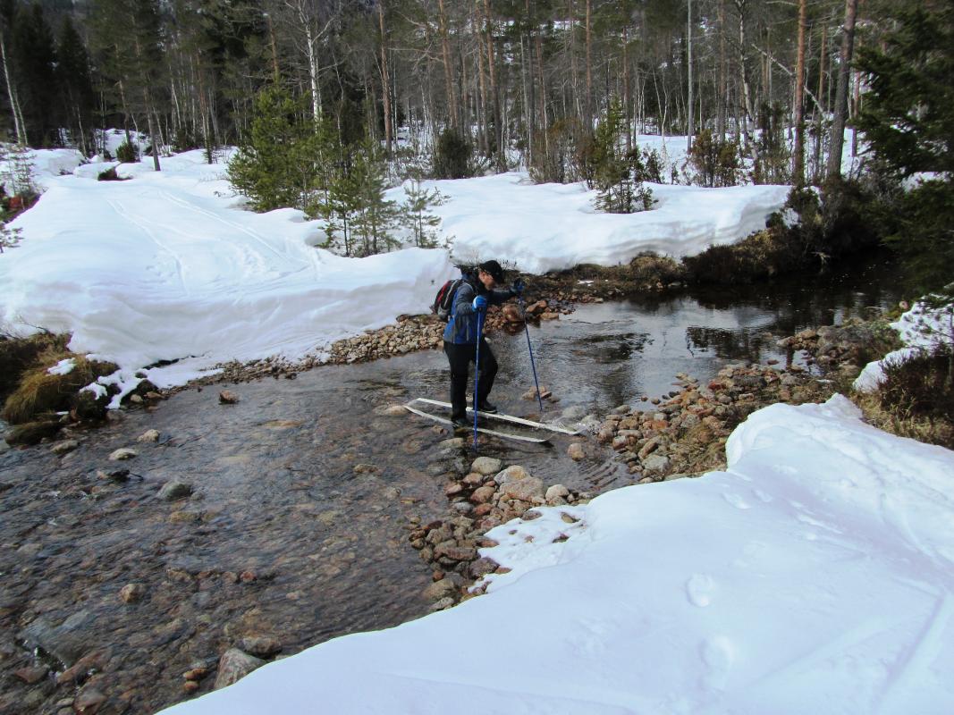 Jag har inte varit precis just där, men i närheten. Det är en del snö kvar i skogen och isen ligger på andra sjöar i samma område på ungefär samma höjd (eller till och med lägre). Isen håller knappast att gå på, om det är någon.1 poeng