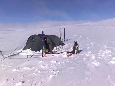 hei Dagens skitur med hundene på ca.15 km er unnagjort i Ålsfjellet. Må nå gå i kjørte løyper eller ferske scooterspor, da snøen begynner å bli råtten. Det er værst for hundene. Men påsketuren på Hardangervidda da: Gikk fra Dyranut noen km ned forbi Stigstuv og teltet der. Forlot kvisteløypen og fulgte vassdraget inn gjennom Skyttarbudalen og teltet noe før Rauhellern. Tilbake delvis på må få og kviste løype mot Stigstuv og teltet ca. 700 m fra den første plass. Alt dette var i bra vær. Siste dagen gil tilbake til Dyranut i noe mer skyet og usiktbart vær. Noe av turen fulgte vi en arbeidsløype til tungt anleggsmateriell, som var kjørt. Den unngikk bratte stigninger og nedkjøringer, hvilket passet meg fint med pulk på slep. det ble faktisk forholdvis kalt flere nette med ca. -14. Hilsen Elgen Hilsen1 poeng