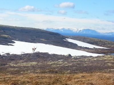 Ble en fin lang tur i fjellet i dag. Mye vind, men fin sol. Opp Trøgebekk. Bortover leinun. Inn ein dal langs natten og opp te vatne. Ein del småfugla på isen. Gikk samme vegen tebake. For mye snø til å gå ned alle steder. Ble endel vabbing. Traff på villrein. Fire bukker i en flokk og to svært nysgerrige. De kom i mot meg. Til høyre for meg. Rundt meg i lett jogg med hodet høyt. Bare et par meter unna på veien tilbake... flotte villreinbukka2 poeng