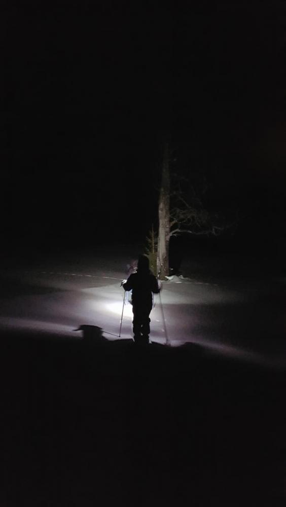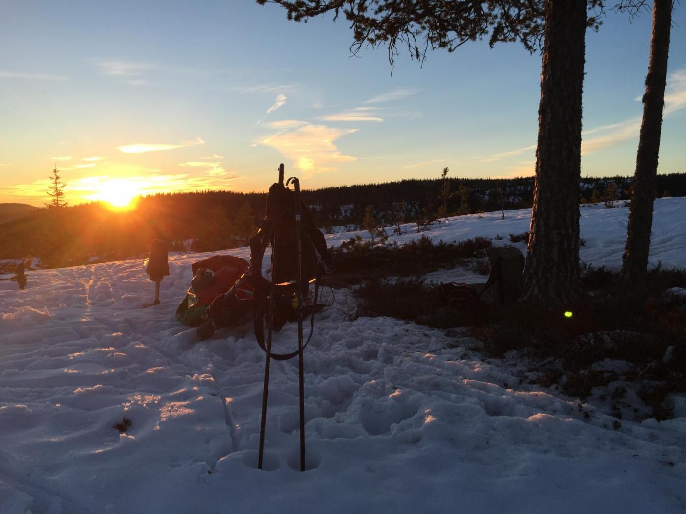 I dag ble det pakket ned nystekte rundtstykker, litt kjeks og kakao/te, før vi spente på oss skiene og gikk litt inn i skogen. Nyoppkjørte skiløyper bare et par hundre meter fra huset (jeg kommer aldri til å flytte til byen, det er helt klart) og blide unger som føk avgårde i full fart. Målet var et jakttårn jeg har gått forbi noen ganger. Det viste seg å være lite og trangt, så ikke det drømmestedet jeg så for meg at det skulle være, men vi fikk spist opp maten vår, og hadde en fin og passe lang tur tilpasset onsdag kveld og barn på tur. Jeg fikk testet lånte langfeller også før helgens Finsetur, og vi fikk ødelagt hodelykten vår i tide til å rekke å skaffe en ny før avreise fredag.1 poeng
