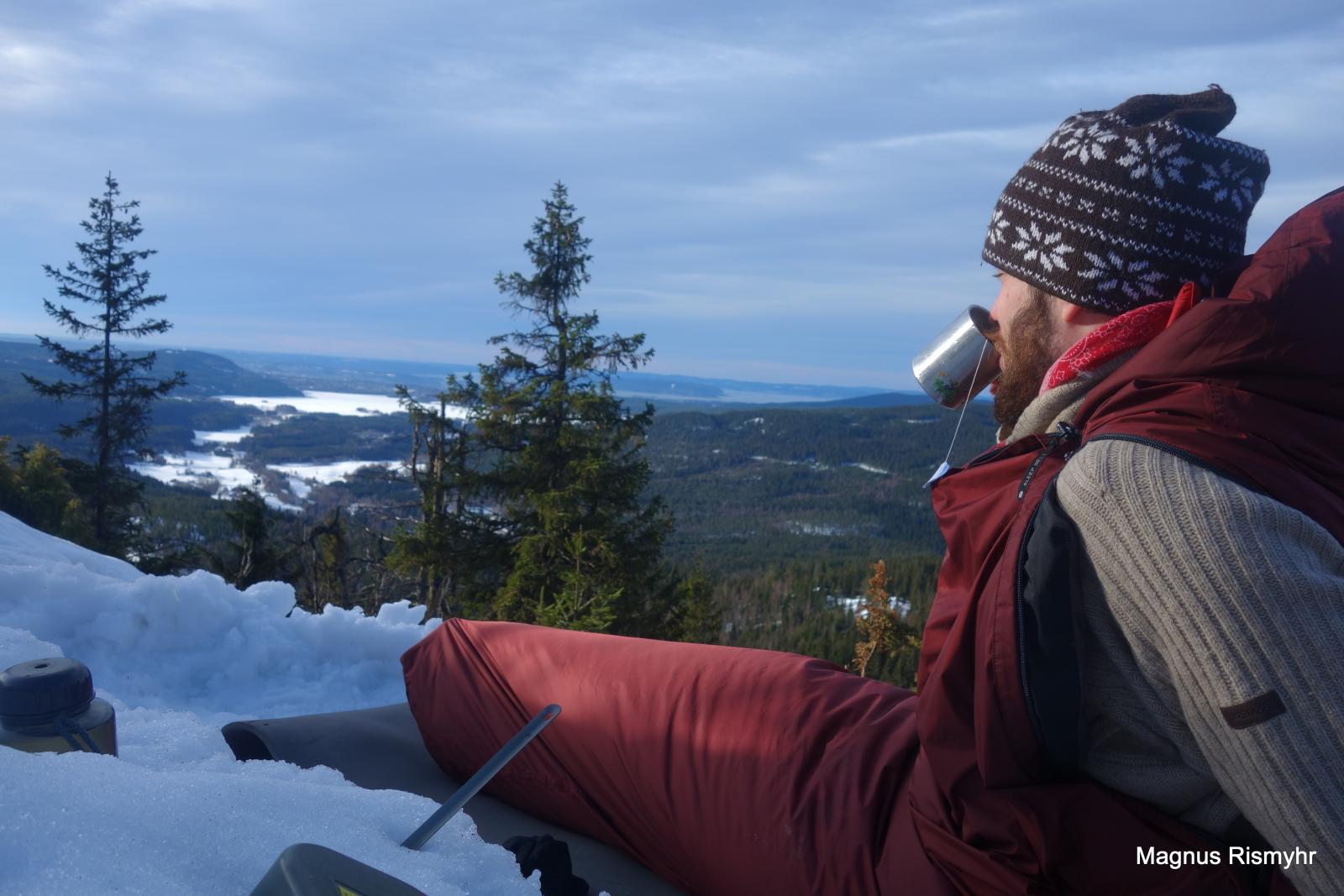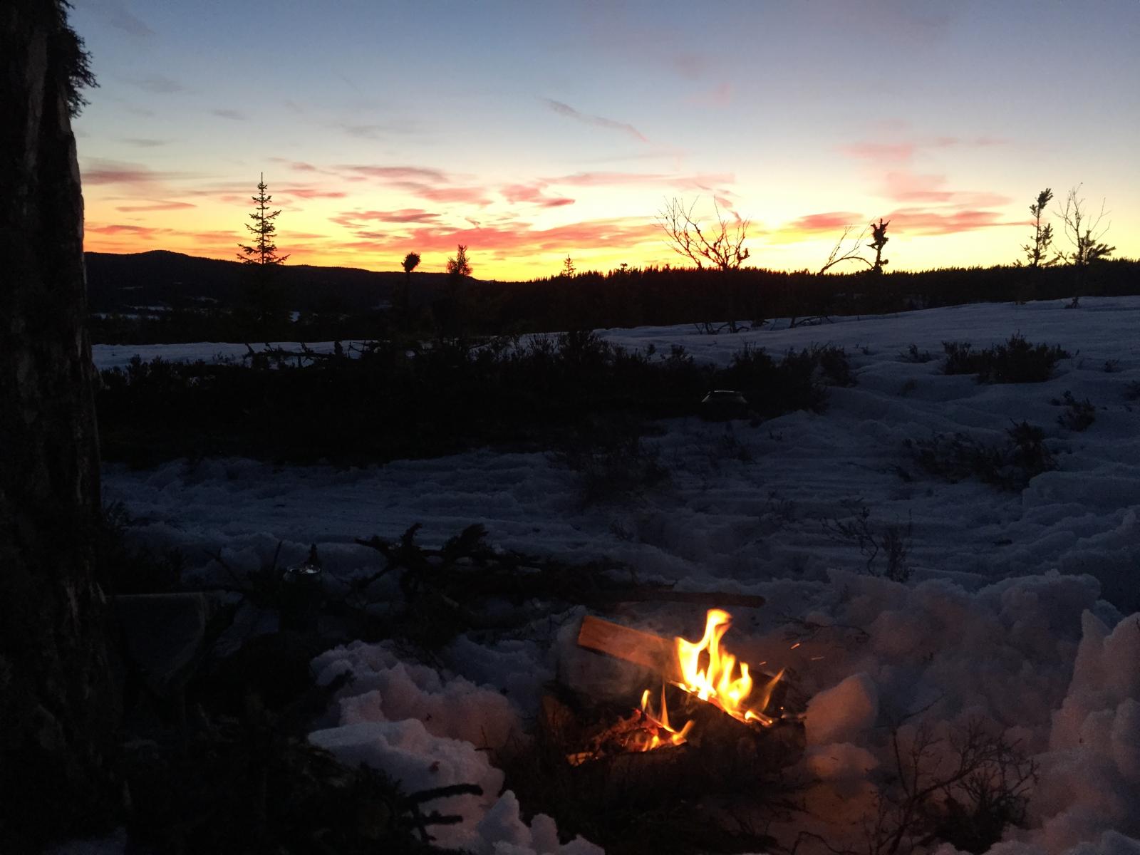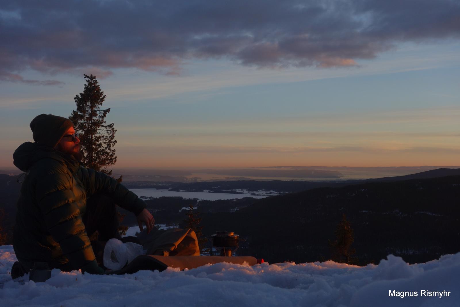 Turene trenger ikke å være lange, man trenger ikke alltid å være så kritisk til hva man pakker i sekken, og det er faktisk ikke alltid man gidder å ta med seg fiskeutstyret. Av og til, eller egentlig som oftes, er det enkle friluftsliv det beste. Et bål, et telt, eller kanskje bare en duk. I kombinasjon med mørke kalde kvelder, stjernehimmel og høstfarger som setter sitt preg på skogen. Det er alt som skal til for å kose seg glugg i hjel. Det enkle friluftsliv. Det enkle friluftsliv. Vi nærmet oss slutten av oktober. En onsdag ettermiddag etter jobb trasket jeg og Christoffer oss opp til Perlevatnet på Emblemsfjellet. Det ble tidlig mørkt nå som høsten hadde kommet og klokken hadde blitt stilt tilbake. Hodelyktene måtte på, så vi kunne se hvor vi gikk. Etter et litt kronglete rutevalg av undertegnede var vi fremme. Det måtte en times jobbing til med vedhogging før bålet kunne fyres opp, og det ble servert Fjordland potetball. Det var ikke en lyd å høre i skogen, nesten som om alt liv hadde gått i vinterdvale. Så var det bare å sitte der, stirre inn i flammene, kanskje en liten runde etter mer brensel, noe godt i koppen og mye spekulering på alt og ingenting. Slik kan en høstkveld brukes. Å våkne i gapahuken til slik utsikt er en bra start på dagen. Av og til er det lov å unne seg presskannekaffe på tur Typisk nok så vi en storfisk vake helt med land. Litt surt at fiskeutsyret lå hjemme Perlevatnet. Teltet til Chris og gapahuken jeg brukte kan så vidt skimtes til høyre. Vi spekulerte lenge på hvor stor fisken kunne være. Konklusjonen? Den var diger. Winter is coming. Chris peiler ut ruta hjem. Det som er helt sikkert er at neste gang vi tar turen hit, skal fiskutstyret pakkes med. Litt surt å stå å se at storfisken vaker og ikke kunne gjøre annet enn å spekulere i hvor stor den var. Etter hvert som diskusjonen gikk ble fisken større og større. Og før vi hadde pakket sammen utstyret og begynte turen hjem, var den heldige ørreten allerede over kiloen. Ja ja, neste gang, neste tur, da skal den lures. Og du skal ikke se bort i fra at den har blitt enda større når våren kommer. [url={url}]Vis artikkelen på bloggen[/url]1 poeng