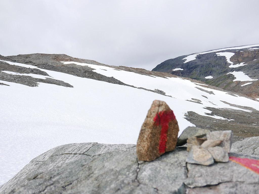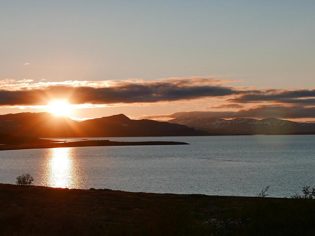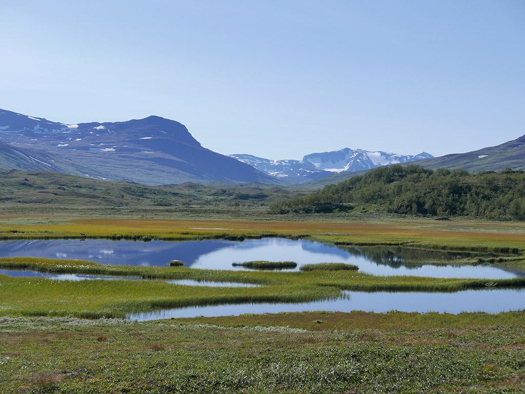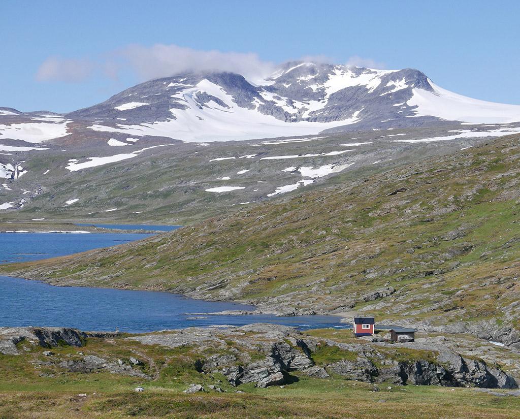 Fra Finnmarksvidda til Polarsirkelen, etappe 5, fra Saltoluokta til Sulitjelma 25. august – 4. september Overnattinger: Pietsaure (telt) Nienndo, Sarek (telt) Øvre Rapadalen, Piela, Sarek (telt), 3 netter Alggavagge (telt) Alajavre (telt) Staloluokta, Virihaure (STF) Staddajåkkastugorna (Svenska Naturvårdsvärket) Sorjushytta (DNT) Sulitjelma hotell Det er 42 turdager siden jeg startet fra Alta, og turen har gått over Finnmarksvidda, gjennom Reisadalen, via Finland og ut til Helligskogen, indre Troms, Dividalen og Narviksfjellene. Jeg har hatt en hviledag på Ritsem fjellstasjon ved Akkajaure. Herfra kunne jeg tatt båt over innsjøen og fortsatt sørover gjennom Padjelanta. I stedet har jeg lyst til å bruke ei ukes tid på å gå gjennom Sarek nasjonalpark fra øst til vest. Været har vært nydelig de siste to ukene, så jeg har nesten glemt at det straks er september måned. Saltoluokta fjellstation (STF) på grensen til nasjonalparken er en flott fjellstasjon med butikk og full service, og her er fullt av folk. Jeg spiser lunsj i restauranten med en svenske jeg har blitt kjent med på Ritsem, vi har tatt buss til Kebnats og deretter båt over hit. Butikken tar seg godt betalt, men de har alt jeg trenger så jeg provianterer for ei uke, det vil si rundt 6 kg mat. De siste to ukene har det vært fantastisk fint vær, og jeg håper på en topptur inne i Sarek-massivet. Svarta Spetsen (1626 moh) er utpekt som et bra mål, det skal være ganske greit å gå opp på ryggen, og et lite platå på toppen med fantastisk fin utsikt. Det skal ikke bli helt som jeg planlegger, for den neste uka blir det skikkelig møkkavær, med mye regn, lave temperaturer og lavt skydekke, så både toppturen og et par andre planer går i vasken. Men sola skinner når jeg forlater fjellstasjonen med kurs for innsjøen Pietsaure, sekken er full og jeg er mett og klar for ei uke med teltliv i villmarka. Jeg følger Kungsleden en liten kilometer, det blir den eneste på hele turen. Kungsleden er bred som en motorvei, og jeg møter flere folk på den ene kilometeren enn jeg vanligvis møter på ei uke. Så det er godt å komme på mindre stier, og ved Pietsaure slår jeg leir noen hundre meter fra et annet telt, jeg vil jo nødig virke innpåsliten. Tar en ettermiddagslur utenfor teltet i kveldssola, og våkner av at naboene, et trivelig ungt sveitsisk par, lurer på om jeg har lyst på varm sjokolade og en prat. De har nettopp vært på vandring ei uke i Sarek, med fantastisk fint vær og lav vannstand i elvene. Kvelden blir hyggelig, og overskuddslageret deres av sveitsisk sjokolade tilfaller meg. Flott tur inn mot fjellmassivene i Sarektjåhkka (må innrømme at jeg bruker et filter på kameraet her) Det er en egen villmarksklang over Sarek. Her er ingen hytter, ingen merkede stier og det er kun noen få elver det er bygget bro over. Her finnes alle de store rovdyrene, og det drives verken jakt eller fiske her. Hund får man heller ikke medbringe, så det er en del restriksjoner. De neste dagene blir de kaldeste og våteste på hele turen. Jeg ser værskiftet komme på vei innover mot Pielastugan og den øverste delen av Rapadalen. Etter to uker uten et regndrypp, setter styrtregnet inn. Det varer uavbrutt i over et døgn, og aldri har jeg sett små tørre bekkeløp bli strie elver på samme måte. Vannet fosser ned fjellsidene, det er plutselig bekkeløp overalt. Jeg blir liggende tre netter i telt nord i Rapadalen, et par kilometer sør for Pielastugan, i påvente av lavere vannstand i elvene jeg skal krysse oppover dalen. Det blir rolige dager med mye lesing og podcasts, krydret med en dagstur opp til Låddebakte, der det er utsikt mot Rapaselet og videre sørover Rapadalen. I 1982 lå vi fire unggutter inne ved Rapaselet, med daglig nærkontakt med de store elgoksene som Rapadalen er kjent for. Vi hadde kjørt en gammel russebil fra Oslo til Jokkmokk, før vi tok sommerferien i villmarka. Den gang ble vi også lurt av elvene, men da var det snøsmeltinga og ikke regnværet som skapte trøbbel. Nå er det regn og dårlig sikt, og jeg finner ingen av Sareks velvoksne elger i kikkerten. Om været ikke er på min side, så har jeg i det minste en av de mest spektakulære teltplassene jeg noen gang har hatt, kun 3-4 meter fra kanten til hundre meters loddrett stup ned til Rapaelva. Når jeg ligger ute på kanten, ser jeg ned på kongeørnene som seiler under meg, det er fantastisk, og ved én anledning står jeg utenfor teltet når ”kungsörnen” kommer stigende forbi, kanskje 6-7 meter fra meg. Den gløtter såvidt bakover mot meg mens den fortsetter å stige, og jeg innbiller meg at den vipper litt med vingene som en hilsen. Et herlig syn. Elvefast. LIgger her i tre dager mens jeg venter på lavere vannstand etter regnskyllet. På kanten bak teltet kan jeg ligge og se ned på kongeørnene. Utsikt mot Rapaselet fra Låddebakte. Kaldt og regn, men godt med dagstur. Jeg bruker alt jeg har av klær, pluss fjellduken. Jeg har gjort et forsøk på å krysse Bielajåhka, men valgte å snu i den strie strømmen. Nå er det dagen etter, 30. august, og jeg er overmotivert for å komme meg videre. Planen er å følge Rapadalen nordvestover til Mikkistugan/Skårja, deretter vestover Guohpervagge og så sørvestover ut Alggavagge i retning Alkavarre kapell. Det har regnet minimalt den siste natta, og vannstanden er betydelig redusert. Jeg vet at det er tre ”crux”; først Bielajåhka, så en vading før Skårja (Mahttujåhka) og så elveløpet ved inngangen til Alggavagge, rett ovenfor renvaktarstugan der. Jeg starter grytidlig etter nok ei kald natt i for tynn sovepose, kommer meg trygt over elvene og kan ta tidlig lunsj på Skårja. Hytta her er åpen, men er knøttliten og ikke egnet for overnatting. Her passerer et par grupper med folk, både fra Kutjavre og Alkavarre, det er flere som har tatt det med ro og ventet på mindre vann. To tyskere bærer med sammenleggbare kajakker og har tenkt å padle Rapaelva