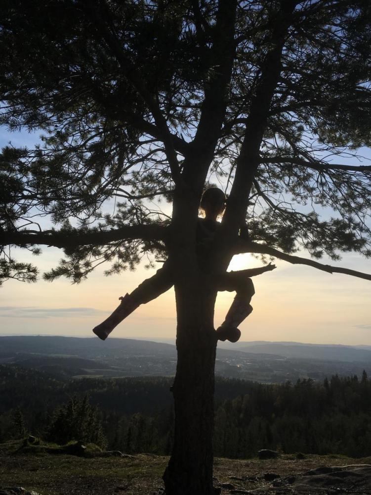 Ja ikke maten altså, men stemningen. Det er en stund siden sist jeg satt og spiste middag med langsom nedadgående sol på tilnærmet skyfri himmel mens ungene slapper av med sitt på alle kanter. Selve middagen var grillpølser med ketchup og sennep. Ikke akkurat Maemo (uten at jeg skal skryte på meg å ha vært der), men ungene var nå godt fornøyd. Vi spoler litt tilbake. Inspirert av @steingrd sitt pappapermisjonsbilde fra Bjønnåsen, påstander om snøfrie forhold i Østmarka og ønsket om utforsking av nye turområder førte til at bilen ble stappet med tre unger, kona ble plukket opp etter jobb sammen med nevnte pølser, og googlemaps dirigerte oss i retning Marikollen skianlegg. Litt rotet skilting i starten, men takket være ut.no-appen, fant vi etterhvert riktig retning. Ungene var klare for å gå på tur, men allerede i første gressbakke skulle minstejenta (5) plukke blomster. Helst alle sammen hun kunne se, og litt til. Ikke snakk om at vi kunne gå før alt var plukket. I første motbakken hadde størstejenta (7) fått stein i støvelen, og eldstemann (9) mente vi skulle stoppe. Prateleken mellom ungene gikk som en foss, men fremdriften turmessig stod helt stille. En kjapp titt på kartet viste at turen ikke skulle være så lang, i underkant av 2 km med 200 høydemetre. I utgangspunktet en relativt kort tur, men nye stier, manglende næring og tullete unger skulle vise seg å være en dårlig kombinasjon. Avmarsj fra bilen var ca fem, toppen nådde vi rundt halv syv. Da måtte mamma inføre femminutters intervaller der ingen fikk lov til å snakke mens nesa og beina pekte fremover bare for å få til tidvis noe forflytning. Minstejenta brøt sammen halvveis opp da hun glemte igjen blomstene hun hadde plukket på en stein hvor vi hadde pause, og de to eldste må minst ha gått 6 kilometer på den relativt korte turen opp. Selv om det var strevsomt nok å komme seg frem, var toppen nok til å være verdt slitet. For en utsikt, og for en ettermiddag å gå på tur på! Himmel og hav. Og middagen var god nok den, i slike omgivelser. Og mamma og pappa fikk hver sin velfortjente kaffekopp etterpå. Ned igjen gikk det vel fort? Ikke hos disse barna. Eldstemann skulle på død og liv vise at han hadde vært på tur, og den beste måten var å få klær og støvler mest mulig skitne. Det var tramping i alle gjørmepytter, rulling i alle mosehellinger, og om de to kilometerne opp ble til seks, ble ikke turen ned igjen noe kortere. Heldigvis fant vi igjen blomstene til minstejenta, og bagasjerommet på bilen takler både støvler og skitne klær. Takk for inspirasjonen, @steingrd, selv om du ikke visste at du ga den! I bilen hjem utbrøt eldstemann at dette var en av de beste turene han hadde vært på!3 poeng