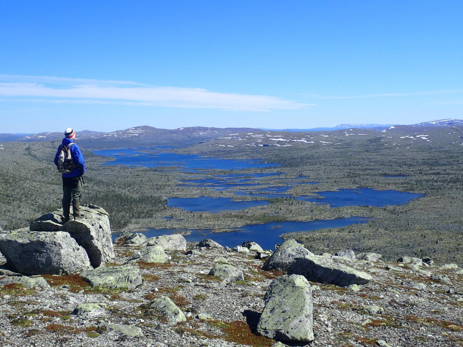 En litt uvanlig morgen - nesten perfekt. Denne gangen handlet det om været. På turen innover mot Blåfjellenden, om det ville bli mer regn og om værgudene ville hive torden og lyn i hodene på oss. På vei tilbake – ganske annerledes. Da var det mer spørsmål om «Hvor varmt blir det? At det skulle bli tur, og at broderen skulle være med ble tidlig klart. Broderen er fortsatt delvis i arbeid, og kunne derfor ikke dra oppover før litt ut på ettermiddagen fredag. Vi planla og bli til lørdag. Vi ville neppe bli alene denne fredagskvelden. Det var egentlig mer et spørsmål om hvor sent kommer de siste? - De kom sent… Vi måtte først komme oss inn til Blåfjellenden. Og det tar jo tid. To-tre timer for de aller fleste. Det regnet på vei opp mot Hunnedalen. Det rant lystig i bekkene nedover liene. Og der det normalt er noen sildrebekker var det nå fosser. Det kunne bli en våt affære innover. På parkeringsplassen var det litt yr. Og det var små flekker av blå himmel. Kanskje det ikke ble så ille likevel. Det ble riktig greit. Ikke opphold, men det lille av nedbør vi fikk over oss, kom bakfra og plaget oss ikke noe særlig. Torden og lyn – ikke så mye som et lite smell. Nå er det likevel ikke den helt store opplevelsen å gå innover med våte bukser og svett bluse. Det blir både klamt og vått, med gore-tex`en på. På hytta var det alt kommet en del folk, og flere meldte sin ankomst etter hvert. Vi ble 20 stykker totalt. Fra mange land – 3 irer, 2 fra Canada en amerikaner og en fra Indonesia. En broget forsamling. Kvelden ble kjekk – som vanlig. Sent om kvelden - natt, kom de siste inn til hytta. Med lykt 25. juni. En av disse er på Fjellforum, og hadde lest bloggen... Nå er det alltid noe som må ordnes. Denne gangen måtte broderen ta de vanlige jobbene, som å lage frokost vaske opp, koste og vaske hytta. Han gjorde en skikkelig innsats, mens jeg gjorde andre nødvendige ting. Det spesielle denne morgenen – det som skilte den fra så mange andre, var været. Det var temmelig annerledes enn fredagens. Noen få små skyer, nesten vindstilt, god temperatur, med andre ord, sol og sommer. En skikkelig fantastisk morgen. Slik de beste morgenene bare kan være. Det var liksom ingen ting å klage over. Det tok ikke lang tid før vi likevel syntes det ble vel varmt. Jeg hadde ikke med kortbukse. Det ble varmt med lange gore-tex bukser. Jeg var fristet til å gjenta et stunt fra noen år tilbake – å gå i bare bokseren tilbake til Hunnedalen. Men med et slik vær ville det ganske sikkert være mange folk i heia. Det ble til at jeg gikk i langbuksa. Det tok ikke lang tid før vi møtte de første dagsturistene. Akkurat ved vadet, der vi gik på steinene over – uten problemer. En av de som kom imot, vasset over med skoa i hånden. Lengre nede kom det også kjentfolk, og det ble selvsagt en liten drøs. Helt nede møtte vi fire på dagstur. Selv om vi ikke traff mange som skulle til hytta, vil den ikke stå tom – alle sengene som kan bestilles var opptatt. Les hele artikkelen1 poeng