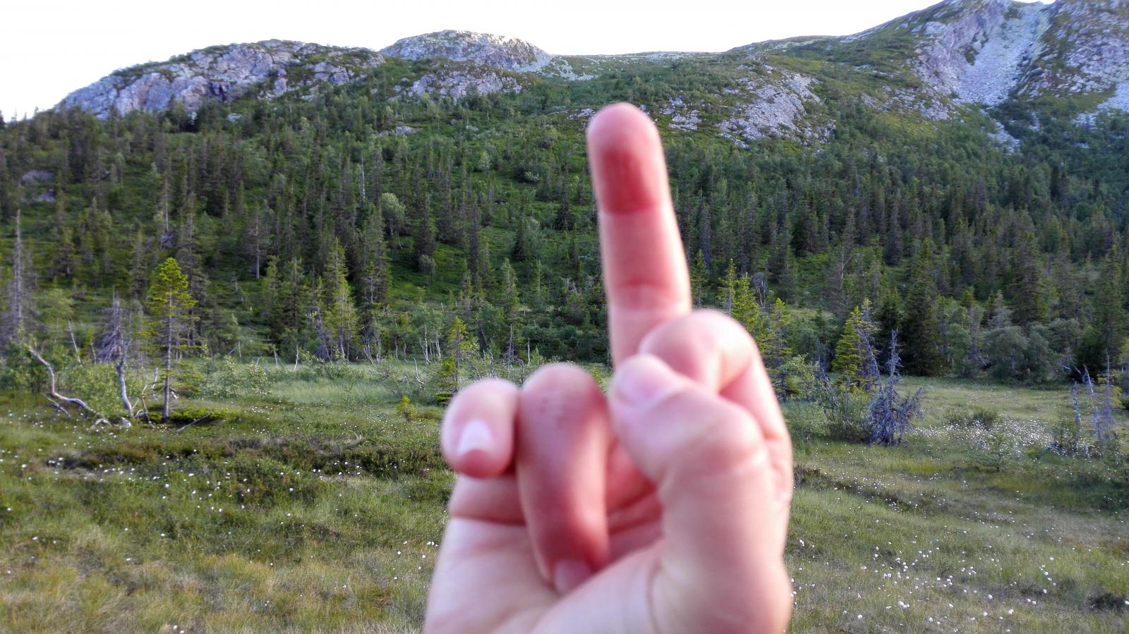 Som den nevnte "dama til Blackbrrd", tenkte jeg det var på sin plass å fylle ut litt i turbeskrivelsen hans. For det første: bratt, tjukt kratt med halvstore, rullende steiner under er helvete på jord for ei småtjukk (dog fjellvant) dame 167 cm. For det andre: hadde jeg ikke vært bygget som en tanks hadde nok ankelen røket da jeg satte den fast og vrei den under fallet som knerta leggen min. For det tredje: jeg sang arbeidersanger hele veien ned for å holde motet oppe. For det fjerde: ja, han var på gråten da vi kom ned til bilen. For det femte: Mælefjell er ei hurpe jeg aldri vil se igjen. Men det ble ei artig historie, da!6 poeng