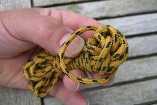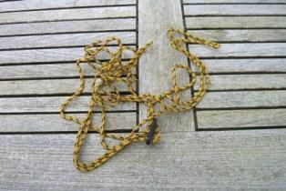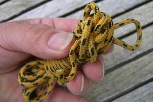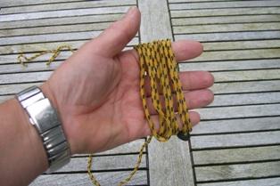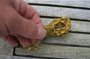 Nå har jeg laget en liten illustrasjon om hvordan du binder opp et tau, en bardun eller hva det nå måtte være som du trenger å få litt system på. Denne kan også brukes på tykke tau. Kveil opp bardunen rundt hånda eller fingrene. Surr tampen av bardunen rundt den oppkveilte bardunen. Lag en løkke på den løse tampen og stikk den gjennom hullet i toppen av bardunkveilen. Vipp løkka tilbake over toppen av kveilen. Stram løkka med den løse tampen og du har en kveil med bardunsnor som ikke blir en gordisk knute når du skal åpne den. Når den skal åpnes så trekkes bare den stramme løkka ut og vippes tilbake over toppen av kveilen.1 poeng