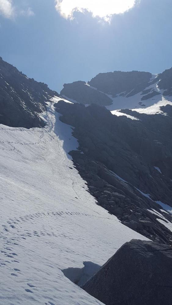 Etter litt biltrøbbel (knust bunnpanne og nye hjullager fram og bak = bil er dyrt) kom jeg meg på veien mandag ettermiddag fra Trondheim. To solrike dager hadde allerede gått fra meg så nå var jeg nesten litt for gira på å komme meg ut! Sov noen timer i bilen på Saltfjellet før jeg fortsatte inn til Sulistjelma øst for Fauske i Nordland. Hadde egentlig planer om å gå fra Lomihytta da distansen herfra var noe kortere. Skulle jo bære med ski og randosko, så det er fint å korte ned avstanden til snøen. Men veien inn dit var stengt pga brubygging 2-3km før demningen så det ble til at jeg kjørte opp mot Tverrfjellet, hvor jeg har lest at de fleste går fra. En kilometer før parkeringa var det midlertidig mye snø enda, men jeg kom meg videre, såvidt! Startet dagen med å åpne veien for sommeren Parkerte noen hundre meter før den angitte parkeringa, her var det fremdeles mange meter med snø på veien. Videre gikk jeg opp til høyde på 1060m og fulgte kurven inn til ei gammel hytte/brakke. Ikke mange hundre meterne etter kunne jeg endelig ta på meg sko og ski, tidligere enn antatt da jeg var forberedt på å måtte gå helt oppå Sulitjelmaisen (1350m) før skiene kunne teas på. Oppe på 1060m, herfra ble det mye ur inn til snøen Kunne ta på skiene på 1060m, det betydde nesten 900 høydemeter sommernedkjøring! Reinsdyrene var aldri langt unna Oppe på Sulitjelmaisen Dette var en særlig varm da, yr meldt 25c nede i Sulitjelma, så jeg var litt spent om snøen skulle bli for råtten og dyp. Jeg gikk opp sør for brefallet, hvor de fleste går opp men måtte av med skia å klyve litt på berg på toppen her. Tok ut ny nedkjøringsrute nord for brefallet hvor det så mye bedre ut så lenge jeg ikke var for nær den oppsprukne isbrearma. På kartet så det ut som at isbreen var veldig flat inn til Suliskongen, men den helnet desverre litt neddover, greit når jeg gikk til Kongen, men det betydde at det ble noen høydemeter opp på returen! Suliskongen (1906m) til høyre, Dama (1781m) til venstre Fra brefallet og over til foten av kongen var det 3km, så gjensto det litt over 500 høydemeter opp til toppen. Snøen var fremdeles utrolig bra og det begynte å skye litt over da svenskeskyer angrep fra øst med torden å regn. Den ene skyen kom noe nært, og jeg tok meg ekstra god tid opp slik at bygen kunne passere. Er litt kjipt å stå på Nord Norges nest høyeste topp med en hissig tordensky over deg! Stortoppen (1822m) fortjener nesten ett mer tindette navn synes jeg, flott topp! Tordenskyen som lå over meg fortsatte sørover ganske fort heldigvis Stortoppen med regnbyger i bakgrunnen Utsikt fra toppen av Suliskongen Gullhav ut mot Bodø Innskriving i boka Jeg ble på toppen i nesten 2 timer, lyset varer jo for evig, og jeg hadde det ikke travelt. Så bare frem til å få kjøre ned i kveldslyset. Skrev meg inn i boka som årets første, i ei bok som hadde ligget her lengre enn jeg hadde levd, og jeg er snart 30 år Gammel. 4G dekning hadde jeg også, så det ble noen snaps før jeg kunne starte nedkjøringa. Nedkjøringa var helt fantastisk, surfet på slusj som verken var for dyp eller sugende. Ble mange svinger ned til breflaten før fellene måtte på. Var på dette tidspunktet litt i ekstase over hvor bra det var å kjøre ned da jeg aldri har kjørt ski i juli før! Siktet meg inn på Stortoppen da jeg gikk tilbake og holdt meg nært den før det gikk nedover på siden av brefallet. Her var det brattere enn det så ut til da jeg gikk opp, rundt 45 grader, så dette var ei fin avslutting på nedkjøringa! Her var det bare å nyte nedkjøringa! Kveldsprofil av Dama Siste nedkjøring nordvest for brefallet Kart over turen. Distanse tur/retur: 24,1km. Høydemeter: 1375m1 poeng
