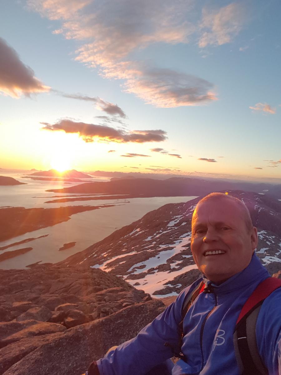 Planen var å reise til Dovre og samle 2000m topper der oppe, men med rimelig ustabile værvarsler, ble det til at jeg tirsdag kveld i stedet valgte Sandnessjøen og de syv søstre. Jeg viste at Trine RS og en venninne skulle gå der noen dager senere, så en del undersøkelser var allerede gjort av henne/oss. Turen ble som sagt bestemt tirsdag kveld, første stopp var Trondheim S for tog til Mosjøen. Kom dit 30 min før toget skulle gå. Fullbooket! Faen!! , men en rask prat med konduktøren ordnet en plass allikevel. Avreise 2340. Neste stopp Mosjøen, med påfølgende buss til Sandnessjøen. På toget inn mot Mosjøen sjekket jeg hotell i Sandnessjøen. Fullbooket!! Ka faen! På bussen inn mot Sandnessjøen oppmuntret dog sjåføren meg og sa det selvsagt ville ordne seg med overnatting. Fremme 0605, rett inn på Scandic. Jaggu hadde de rom allikevel, men jeg kunne ikke sjekke inn da uten å betale for 2 netter. Tuslet litt rundt i sola mens jeg tittet bort på Dønnamannen! Fikk lov til å sjekke inn kl 0900, for noen timer med søvn. Hadde knapt sovet på toget oppover. Avreise med buss til Søvik ca 13 og start fra P-plass ved Søvik kl 1335. Jeg går aldri etter klokka, men siden alle av ulike årsaker lurer på tidsbruk (så også jeg), så her er tidene som en forholdsvis utrent, litt overvektig mann på snart 50 brukte. Nå skal det sies at jeg normalt sett er seig når det gjelder å gå langt ; Start Søvik 1335 Breidtinden 1525 Kvasstinden 1756 Tvilling sør 2132 "Tvilling" der boka er 2144 (hvorfor de er her og ikke på den høyeste skjønner jeg ikke, for det er ikke sååå vanskelig bort til Tvilling 0945) Tvilling nord 2152 Skjerdingen 2306 Grytfoten 0035 Botnkrona 0205 Elvåsen p-plass 0425 Totalt 14t 50 min. Selve turen gikk som følger. Opp til Breidtinden gikk det lett, eneste plagen i varmen var en del fluer som absolutt skulle slå følge med meg. Vel oppe på Breditinden ble jeg litt sjokkert når jeg så hvor langt jeg måtte ned for å komme opp til Kvasstinden. Det er mange høydemeter ned! Her er jeg vel 2/3 nede og titter bakover og opp. Gikk greit ned til vannene og greit opp til Kvasstinden. Ned fra Kvasstinden begynte jeg å bli sliten, og når jeg kom ned til vannene igjen og begynte oppstigningen for å runde Kvasstinden opp mot Litlmarkholten var det helt slutt på krefter, og fluene hadde nå formert seg til ca 1 million plaget livet av meg. Sola stekte, det var 0 sek/m vind og nydelig!..men jeg var FULLSTENDIG tom for krefter føltes det som. Jeg ga faen i fluene, la meg rett ned på berget i 10-15 min, spiste litt og drakk litt. Jeg viste jo at oppladingen med reise uten søvn, 3 timer søvn på hotellet og litt for lite mat til frokost/lunch før jeg startet ikke var perfekt for å si det mildt, men jeg hadde ikke trodd jeg skulle slite allerede der. Etter hvert reiste jeg meg opp og bestemte meg for å slutte å gå, men bare tusle. Det gikk veldig mye tregere, men til gjengjeld ble jeg ikke så sliten og jeg trengte ikke stoppe så mange ganger. Det fungerte!! Kreftene kom sakte men sikkert tilbake og opp mot Tvillingene. Toppen med boka til høyre og Tvilling Nord 0945 til venstre. Fint å se utover havet fra Tvilling sør 980. Videre mot Skjerdingen, Grytfoten og Botnkrona fikk jeg ganske så bra flyt syntes jeg. Været var nydelig helt frem til Skjerdingen, hvor det blåste opp og ble kaldt. Da måtte shorts og t-skjorte vike for lange klær. På veien mellom Tvillingene og Skjerdingen møtte jeg ganske mange mennesker. Tydeligvis populært å gå opp mellom der og gå opp dit på kvelden for å se midnattssola. Etter Skjerdingen kl 2306, var det bare meg i fjellet. Som sagt gikk det veldig greit bort til Botnkrona. Men når jeg skulle runde denne og ikke minst når jeg skulle opp den aller siste bakken opp til toppen var det igjen helt slutt. Jeg satte meg ned der på en bergknaus og tittet opp mot toppen og lurte på om jeg virkelig orket å gå opp. helt idiotisk selvsagt, men jeg var så sliten så sliten. "John, du trenger jo ikke gå opp" "John, du kommer til å kollapse!" "Men i helvete da, ta deg sammen. Det er en jævla liten topp igjen" "Kom igjen nå" Etter mye prat med meg selv, spiste jeg opp det jeg hadde av mat (sparte kun 1 sjokolade) og drakk opp colaen. 10 min senere var jeg på vei opp, og ikke så lenge etterpå var jeg oppe på toppen. NYDELIG! Kl 0205 varmet også solen litt. Deretter var det bare å komme seg ned. Det var fine snøfelt ned til Grytfotvatnet så ned dit gikk det veldig fort. Deretter var det jaggu drygt ned til p-plassen. Jeg hadde lest mange fortelle at det siste stykket var drygt, men at det skulle være så drygt hadde jeg ikke trodd gitt! Varmen kom med solens oppgang og turen ble avsluttet som den startet i t-skjote og shorts. Uansett, jeg kom meg ned. Fikk ringt etter taxi (det var 17!! grader når jeg satte meg inn i taxien litt før kl 5), rask tur innom Shell for litt cola og snacks og deretter rett til sengs. Turen/oppladningen var preget av at den var veldig tatt på sparket, men alt i alt var det en FANTASTISK tur!! Ps. Som Trine RS kjøpte jeg Salewa Wildfire Pro før denne turen og de var fantastiske! Spikerfeste!! på fjell, stein og sva og det er det jo en del av på denne turen. Anbefales!1 poeng