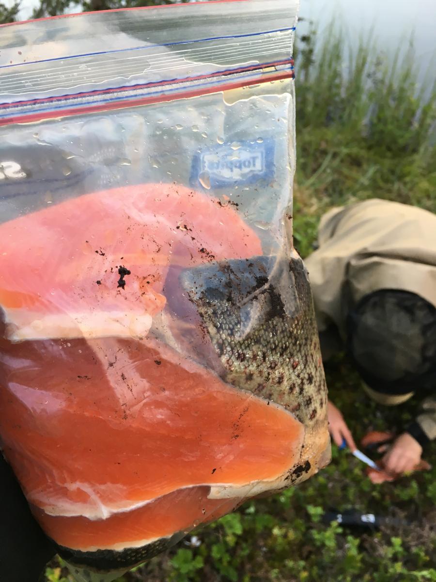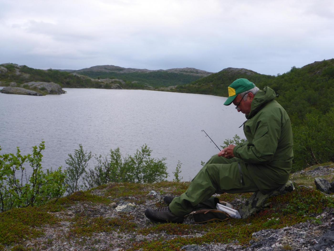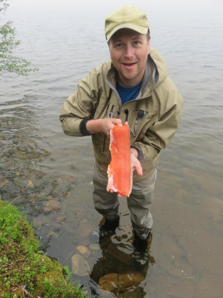 Det var tid for guttetur med 70 års jubilanten i sentrum. Sekkene inneholdt diverse godsaker, men et par fiskemåltider var også nøye planlagt. Ble plukket opp på flyplass og fraktet ut til startpunkt. Etter en time og femten minutter, i sol, lettskyet og litt vind, etablerte vi basecam. Planen var å ligge hele uka på samme sted og ta turer til vann i nærheten. Vi forventet egentlig ikke mye gåing. Håpet var at vannene rundt leiren skulle levere. Dag en går vi til nærmeste vann som i fjor viste frem de største fiskene. På veien ned blir jeg og pappa ventende et par minutter ved en pytt. Den avslører et pent vak. Jeg og bror prøvde her i fjor, men kjente ikke fisk. Jeg blir derfor med bror 2 ned til høyre siden av det store vannet. Første kastet mister jeg en 5hgs på blank wibrax og småfisken vaker inne ved land. En god start egentlig. Men jeg har glemt noe viktig og må ta turen opp igjen i leir. Heldigvis bare sju minutter å gå. På veien stopper jeg opp ved pytten. Pappa står med bøyd stang og bror er i hundre. Han tar persen din, runger mellom fjellsidene. I alle dager. Bror 2 tilkalles og vi bivåner slutten av landingen. Han med kamera, jeg i sjokk. For en fisk! Jubilanten lander en ørrethann på 3730 gr! Ny pers med over 2 kg. Og ny familierekord. Turen er reddet og for en start. På det tredje kastet hans. Mens vi sløyer fisk lander han likegodt en 9 hg`s som får friheten tilbake. Alle fire slenger seg ned lyngen og drar fram flytende godsaker. Fisken er latterlig rød i kjøttet, full av marflo. Hva skal man si. Det blir fiskesuppe av halestykkene. De store sidene tilsettes gravemix og legges kaldt i tre dager. Dag to våkner vi til overskyet vær, men ikke noe regn å snakke om. I ei vik i leirvannet slenger pappa ut mens noen gjør sitt fornødne. Resultatet blir en kilos ørret i flott kondisjon. Den gjenutsettes, det har han aldri vært med på før! En rolig marsj bringer oss deretter til enden av en rekke med fire mindre vann. Et par nye, og to kjente fra i fjor. Ganske raskt debuterer jeg med fisk. Snaut 7 hg. Pappa setter på ei god gammal stingsild og tar selvfølgelig en på 1,2 kg. Rødfargen er intens på fiskene i dette vannet. Det blir landet flere mindre fisk, før bror nede i enden lurer en ørret på nesten 1,8kg. Den går også tilbake. De tre andre vannene varierer i fangst, men noe særlig mer er ikke verdt å nevne. Tredje dagen forløper roligere. Kraftfrokost før det denges bly hist og her før middagen står for tur. Et skikkelig godt fiskemåltid med poteter (for enkelte), rømme, løk, hvitløk og råvarer krydret med skjærgårdskrydder. Himmelsk. På kvelden tar jeg og bror 2 turen ned for litt fluefiske. Vinden har stilnet så det bør skje noe på overflaten. Et par vak åpenbarer seg umiddelbart så vi finner hver vår strategiske plass. Min første veier 865 gr på streaking. Er ikke ferdig med sløying før en ny fisk viser seg innenfor kastehold. Den tar også, men veier bare snaut 6 hg. Uansett fin matfisk. Bror 2 lurer en på 7 hg før kvelden er omme, men vi er borti flere. Uka forløper stort sett som de første dagene. Vi får bra med fisk. Fisk rundt en kilo landes hver dag, men ingen flere store viser seg. Vannene ligger tett og vi er innom 26 stykker totalt i løpet av turen. Ikke alle gir fisk, men det er noe med å ha vært innom. Det er befriende å være på fjellet og vi koser oss skikkelig. Et av turens høydepunkter er da gravfisken er ferdig. Kvaliteten på råvaren er utsøkt og vi treffer bra med mengde krydder. Dessverre har vi noe uoppgjort med en mink i området, så det ble ikke noe gravet ørret med hjem. En fantastisk tur i godt selskap.1 poeng