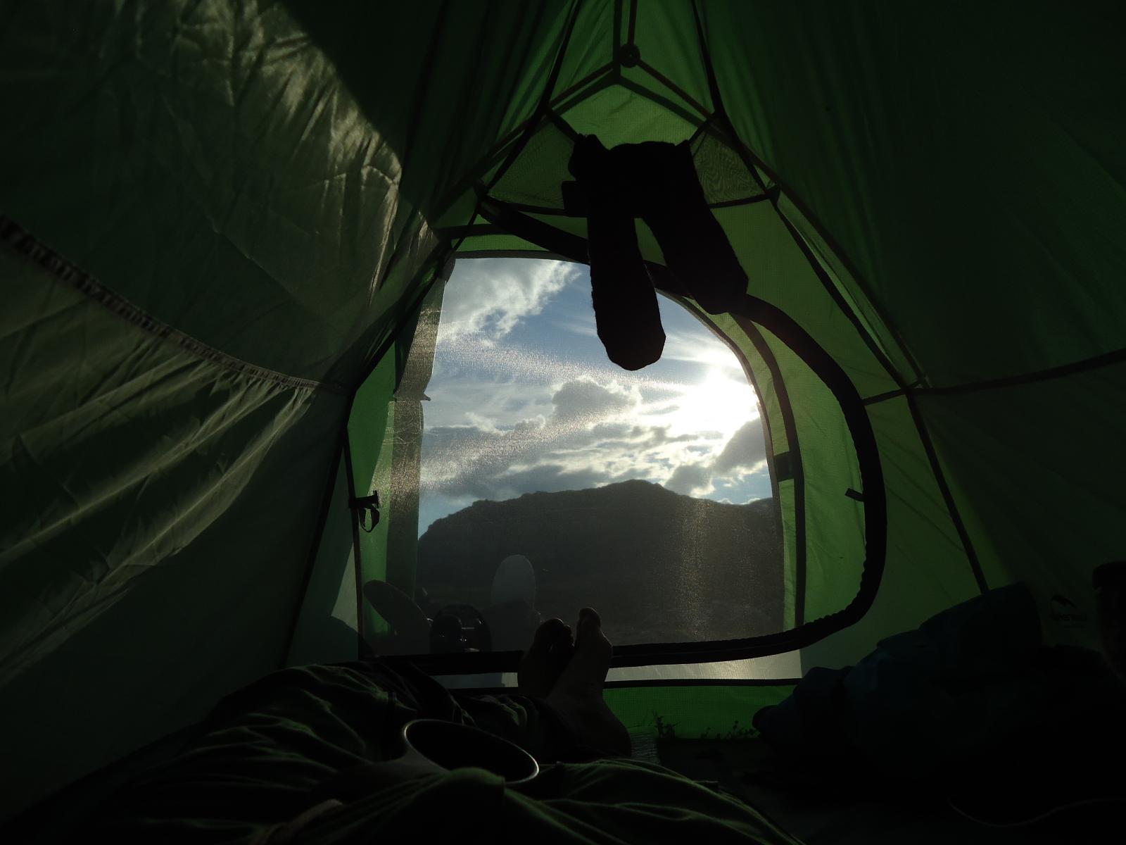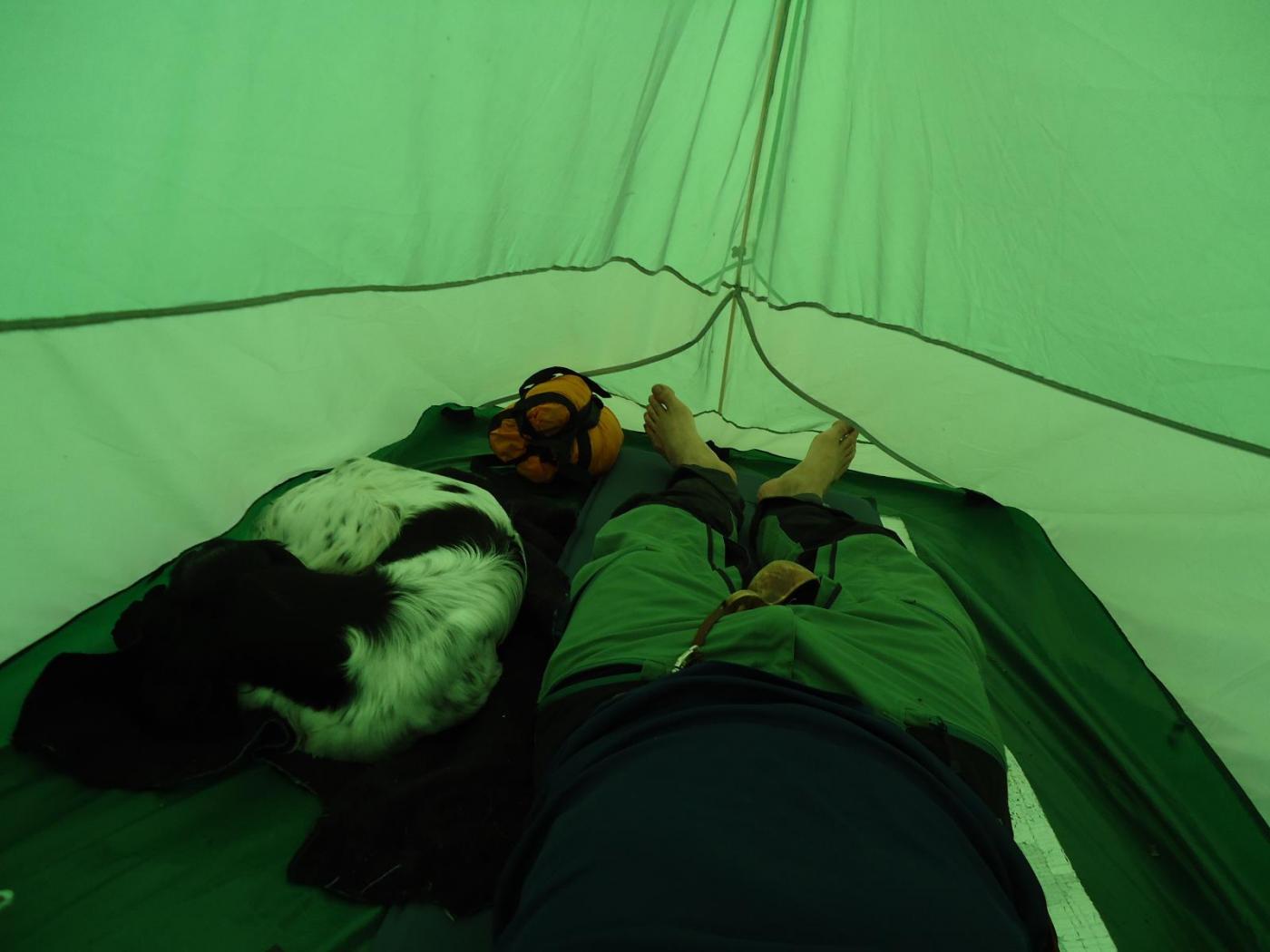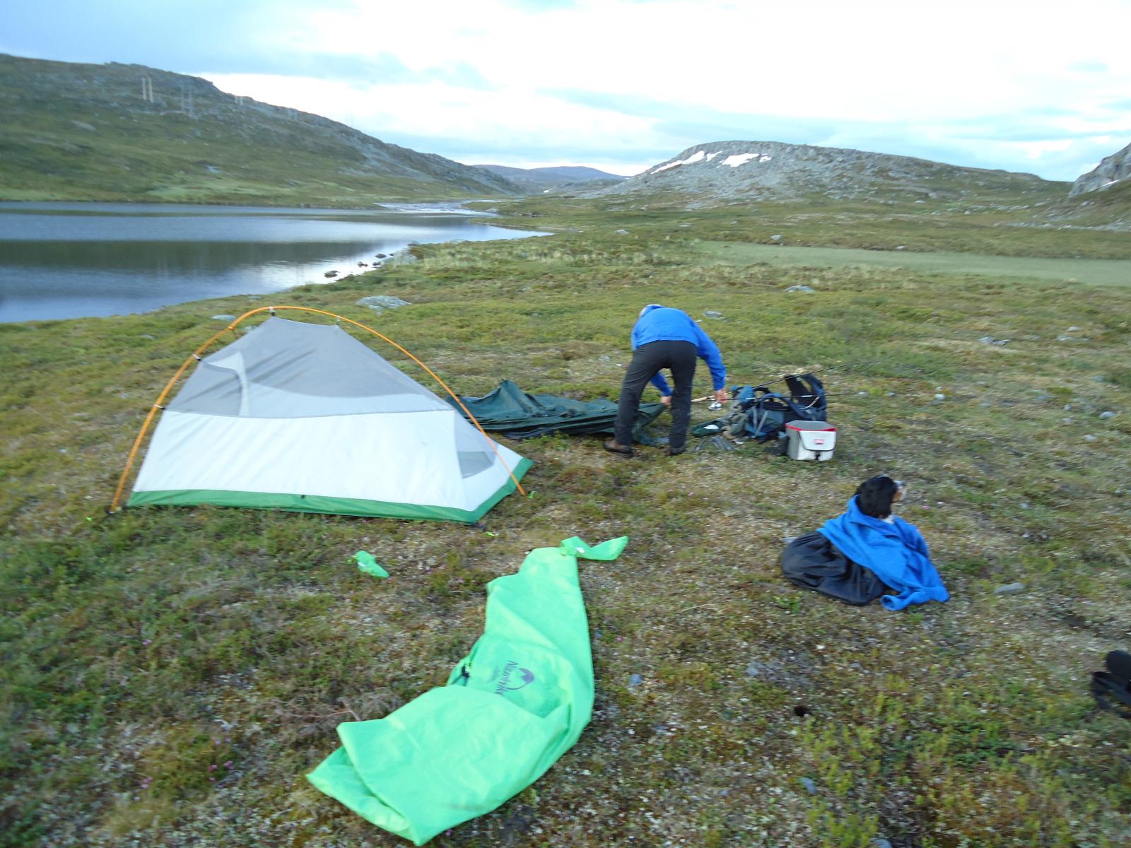 Fem dagers rundtur i Frafjordheiene med @hllnd, Høgaleite-Degevatn-Strålausheiæ-Blåstøldalen. Traff forresten @REJOHN på vei innover mot Blåfjellenden med en flokk sauer. Hyggelig møte! Stort sett sånt vær: Tok nøyaktig en time før buksa røyk, men ble lappet sammen igjen hver kveld, kveld etter kveld: Klarnet endelig opp siste kveld, mens skyene i Blåstøldalen ennå kom blåsende opp mot campen: Og siste kvelden ble et eventyr med en vanvittig lyssterk fullmåne over Leitesvatnet: Teltekvipasje siste morgen, endelig tørre sokker og sko: Strålende tur, uansett: Dro på fiskeutstyr, kastet sluken i vannet et totalt dusin ganger uten suksess. Brukte stort sett tiden på å gå, sutre over gjørme, sutre over oppoverbakker, sutre over kalde føtter, sutre over for tynn sovepose og sutre over for lite tilgang på kjeks. Alt med godt humør!5 poeng