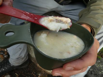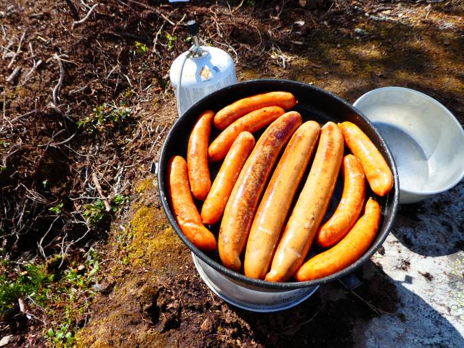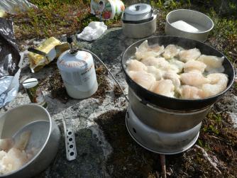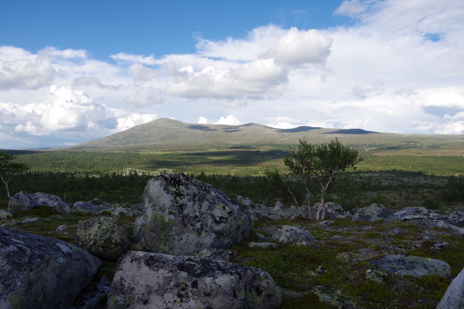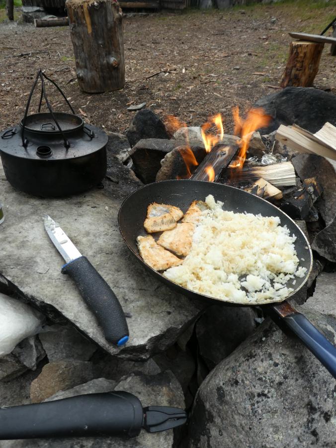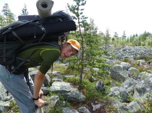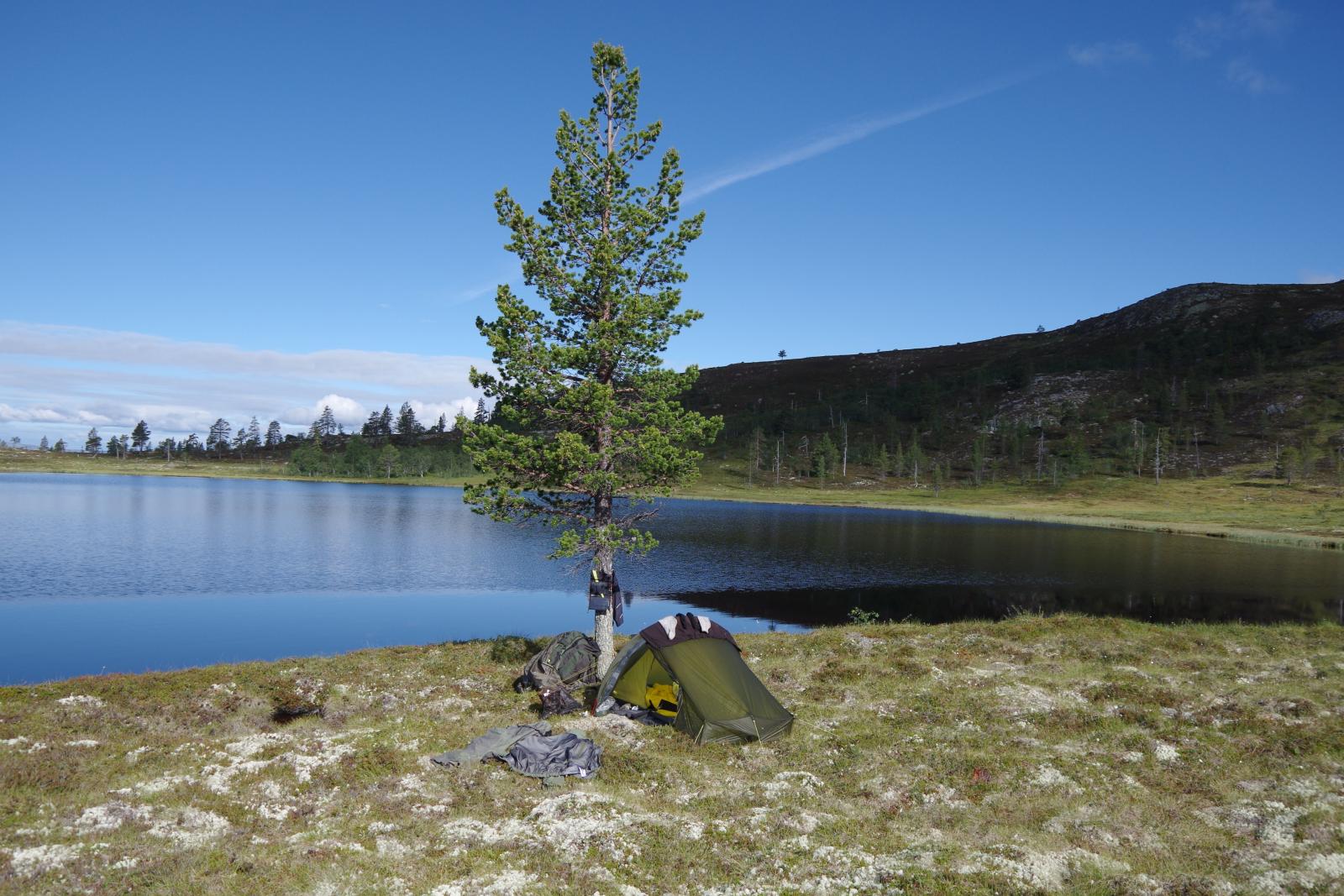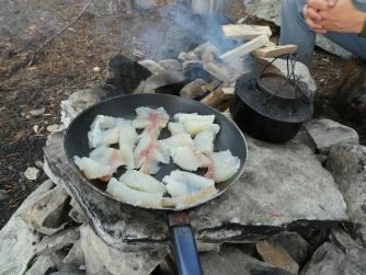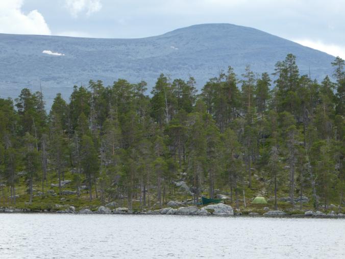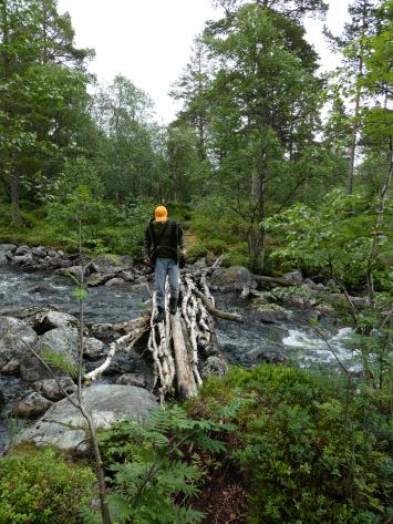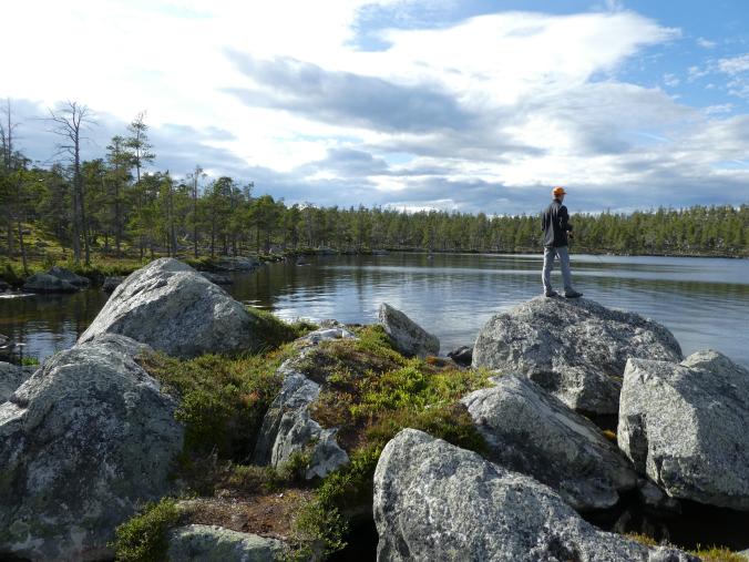 Fantastisk i Femundsmarka Etter mye planlegging og pakking var alt klart, åttte-ni timer bilkjøring ventet. Jeg gledet meg VELDIG til å komme inn i Femundsmarka nasjonalpark for første gang. Det var så mange spørsmål jeg ville få svar på, hvordan er det å finne teltplass?, hvordan blir fiske?, hvordan er terrenget å gå i?, jeg vet at det finnes områder med mye blokkstein, men hvor? Kommer jeg til å treffe mye folk? Hvordan blir været? Alle disse spørsmålene (pluss mange flere) vil jeg få svar på i løpet av turen. Informasjonskilt om narsjonalparken Det var ettermiddag og vi (jeg skriver «vi» fordi pappa var med, det hadde jo vært litt rart om jeg hadde kjørt alene, jeg er tross alt bare fjorten år) kommet så langt som til Alvdal. Her sov vi en natt hos noen venner. Vi kler oss omog venter på ferga Fergen (Femund 2) går klokka 09.30 fra Synnervika til Røa, dermed ble det en tidlig avgang fra Alvdal (det er nemlig et lite stykke å kjøre). Klokka 06.00 våknet jeg, og klokken 06.30 var vi på vei til Synnervika. Her ble det spist noen skiver som en rask frokost før fergen kom. Vi traff også en hyggelig kar her på kaia (hei til deg!). På fergen spiste jeg en nydelig vaffel som jeg sikkert kommer til å sette enda mer pris på hjemturen. Femund II Turen opp til Røvollen turisthytte gikk ganske fort og greit, men det skal sies at sekken ikke var lett! På vei mot Røvollen Tung sekk! Krysser Røa Røvollen Videre gikk fulgte vi turistforeningens sti opp til Røvolltjønnane. Røvolltjønnan-stille og varmt! På veien kom jeg så nærme et reinsdyr at jeg nesten kunne ta på det! Reinsdyr Vel oppe ved Skogtjønna satt vi opp leir, etter en lang etappe var magene skrubbsultne, pølser og ris sto på menyen i dag, det smakte herlig! Mat til to personer! På kvelden var det tidvis litt bris, men ingen vak. Vi forsøkte det meste uten hell. Neste morgen var det skyfri himmel og ikke et vindpust, jeg så røya vake og spise fluer i vannflata. Det var nytteløst med sluk og spinner i slike forhold, tørrflue ville muligens vært nøkkelen (har noen tips til hvordan man kan fange røya, så skriv gjerne en kommentar!). Prøver stanga på kvelden ved Skogtjønna Da leiren var pakket ned tok vi turen mot øvre Roasten. Utsikt over Roasten Her traff vi en hyggelig kar på en av hyttene som kan leies. Vi slo oss ned en liten stund her og spiste lunsj. Han tilbød å ro oss over på nordsiden av Røa, vi takket gladelig JA. Vi sparte mange timer med gåing eller en skummel vading over Røa, da vi bare hadde 5 dager til rådighet. Fyren vi traff tipset oss om Roastbua (en åpen koie), den var ledig og vi bestemte oss for å ligge her for natten da de meldte regn den natta. Roastbua Før kvelden gikk vi en tur opp til Gislehåen for å prøve noen kast. Her dro pappa opp en Gjedde på 1,6 kg. Denne beit på møresild. Vi hadde aldri forsøkt å spise Gjedde før, så vi tok fileter og tok sjansen. Første Gjedde på turen Da vi kom ned til Roastbua igjen tok vi noen kast ved innoset til Roasten. Plutselig ropte pappa «Isak, hent håven, jeg har fisk på!». Jeg løp bort og stakk håven ned i vannet og fikk opp en fin og feit ørret, den var ikke av de aller største. Denne beit også på møresilda av en eller annen rar grunn. Første ørret på turen Stekt ørret og ris Dagen etter tok vi turen lenger opp i vassdraget, vi fulgte bekkene fra Gislehåen oppover til noen vanner. Det første av disse vannene var et typisk Gjedde-vann. Jeg forsøkte med møresilda pappa hadde fått fisk på tidligere på det første kastet. Vannet var klart og blikk stille, etter noen sveiv kunne jeg se sluken nærme seg land. Plutselig så jeg et beist av en fisk komme etter møresilden, det var en Gjedde, den nappet og jeg gjorde et kraftig mothugg, kampen var i gang! Jeg hadde bremsen på snellen passelig på, men denne fisken merket den ikke en gang! Bremsen ble strammet så kraftig at jeg selv ikke klarte å dra den ut. Etter noen minutter trodde jeg Gjedda var utkjørt, pappa prøvde å håve den, men så sprellet den vilt og hoppet ut av hoven. Etter å ha fått den inn til land igjen fikk vi håvet den opp på land. Vekten stoppet på to kilo! Min Gjedderekord Gjedda sammenlignet med vekta i størrelse Skarpe tenner Etter Gjedde opplevelsen gikk vi videre langs Storbuddhåen, her var det mye blokkstein og vanskelig å gå, det ble ingen fangst her. Her var det ikke langt unna at jeg sovnet! Da vi hadde kommet ned til Roastbua igjen tok vi noen kast på nordsiden av øvre-Roasten. Her dro jeg opp to feite og blanke ørreter som ble veid til 300 og 500g. To ørreter til, største på halvkiloen Av disse to ble filetert og kappet opp i små terninger og puttet oppi Lofoten fiskesuppe. Dette måltidet smakte herlig. Fin farge, men ikke røde Klokken 10.00 neste dag var vi klare til avgang. Vi gikk langs hele nordsiden av øvre-Roasten og fulgte en bekk opp til Litlsjøen. Her fant vi en fin leirplass på vestsiden av vannet. Leiren ved Litlsjøen Utsikt fra teltet Pappa tok første kastet med en lillauren spinner. Plutselig rykket det kraftig i stangen hans, og jeg sveivet inn så fort jeg klarte og løp bort med håven. Det var en fin abbor som ble veid til ca.500g, ikke dårlig! En av abborene herfra Etter noen timer med fisking stoppet vi, resultatet var fem abbor på rundt halvkiloen og to litt mindre, dette var mer en nok til en god fiskemiddag! Det smakte himmelsk med stekt abbor og ris. Kvelden ved Litlsjøen var fantastisk, jeg nøt hvert eneste sekund! Da var allerede siste morgen kommet. Jeg startet dagen med to store porsjoner med havregrøt, dette skulle bli en lang og tung dag. Havregraut-herlig! Etter at leiren var blitt pakket sammen bestemte jeg meg for å ta et kast med stangen som en avskjed. Jaggu beit det også på det ene kastet, en abbor på 500g, den fikk svømme ut igjen. Ned til Roasten tok vi en annen vei en opp, vi krysset ned på skrå istedenfor å følge bek