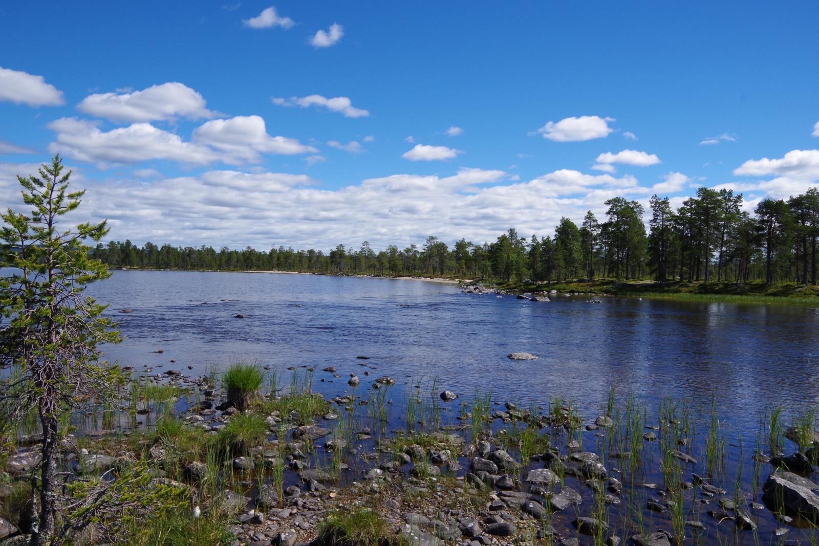 En langtur til fots i storslått natur rundt hele Femunden. Terrenget er stort sett lettgått og foregår for det meste på merket sti og vei. Noen partier med blokkmark og steinrøys må man uansett regne med rundt Femunden. Turen kan startes fra parkeringsplassen ved Synnervika, og Flensjøen er en fin distanse unna om man starter turen på ettermiddagen. Første kilometer går på grusvei før det er merket sti til over skoggrensa. De siste km går over reinsmose og steinur. Fra Flensjøen er det merket T-sti over Flenskampan og ned i Tufsingdalen. Videre sørover må man regne med noen etapper på asfalt om man ikke velger å gå i fjellene vest for hovedveien ned til Sømådal. Fra avkjøringa til Haugen i Sømådal går det sti over til Århovdbua. Denne er verdt et besøk, og gir gode muligheter for klestørk og en natt innomhus om det skulle friste. Neste etappe følger traktorvei frem til Bjørnfjordvika. Herifra og frem til Gullsmedtjønna er det vekselsvis grov steinur og tung myr, men snaufjell den siste biten. Videre går turen i tørt terreng forbi Bottølen, før det er noe myr ned til Nordre Gløtsund. Her må man vade over, og vannet går opp til knærne ved moderat vannstand. Etter noen hundre meter må Søndre Gløtsund forseres. Det er litt dypere og rekker opp til over hofta. Fra Gløtsundene går ferden videre på vei og god sti helt frem til Gråsnesbukta. Her ligger en idyllisk sandstrand med gode leirplasser like ved. Turen videre går på sti forbi Storbekken (gammelt gårdsbruk), Hansbekkvollen og videre opp til Volsjøen. Fra Volsjøen går det tydelig sti ned til veien inn til Elgå. I Elgå er det en dagligvarebutikk som fører alt fra mat til fiskeutstyr. Fra Elgå går det T-sti over til Svukuriset. Når man når toppen mellom Gråvola og Sandtjønnvola brekker man av mot øst og balanserer over steinrøys ned til Revlingsjøane. Om det er sleipt og glatt anbefales det å gå om Svukuriset for å unngå skader i steinrøysa. Fra Revlingsjøane følger man T-sti ned til Svukuriset, og fortsetter på T-sti nordover over Falkfangerhøgda. Et par kilometer nedenfor Falkfangerhøgda kommer man til Oasen. Det er en idyllisk plass med friskt kildevann fra et oppkomme, med en sandbanke og forvridde bjørketrær. Herifra går man rett vest og kommer inn på stien ned mot Røvollen. Fra Røvollen følges T-sti ned til brua over Røa. Her brekker man av og føger elva ned til Røsanden. Dette er en fin plass med mange etablerte leirplasser. Siste etappe følger østsiden av Femunden opp til Nordvika. Dette strekket går på merket sti som ikke er tegnet inn på kartet. Det står røde påler fra strandkanten ved Granbekken og nordover et stykke. Stien blir dog dårligere og dårligere og merkingen er sporadisk noen plasser. Øst for Badstuholmen kan man gå inn på stien som kommer fra Nordre Skarpåtjønna og følge denne tilbake til Langen og videre ned til Synnervika. Om man velger å gå med hund så bør nok ruta legges om enkelte steder, spesielt ved nordre del av Isteren og siste del av etappen mellom Elgå og Revlingsjøane. Det er mulig å slå leir langs hele ruta, og jeg valgte følgende steder: Flensjøen, Bouddtjønna, Kvennvika, Århovdbua, Gullsmedtjønna, Søndre Gløtsund, Tolgesjøen, Gråsnesbukta, Volsjøen, Elvodden (utløpet til Elgåa), Revlingsjøane, Oasen, Nedre Roasten og Røsanden. God tur! Flenskampan sett fra Flensjøen. Leirplass i Kvennvika. Århovdbua. Steinrøys langs østsiden av Bjørnfjorden i Isteren. Idyll ved Gullsmedtjønna. Nordre Gløtsund. Vading opp til knærne. Søndre Gløtsund. Vading opp til over hofta. Solnedgang ved Søndre Gløtsund. Gråsnesbukta. Store Sollerøya sett fra Storbekken. Terrenget mellom Volsjøen og Elgå. Utløpet til Elgåa. Stor-Svuku. Revlingsjøane til høyre for bildet. Oasen. Solnedgang ved Oasen. Siste leirplass ved Røsanden.1 poeng