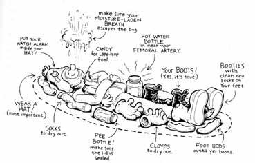 Hei! Mnjaa -- den åpenbare løsningen her er jo gåsedun med høy loft, men det er jo, som du sier, svindyrt. Dersom du ikke ønsker å kaste bort penger på kjente merker vanlige i Norge (Rab, Mountain Equipment, Mammut), er det i alle fall noen litt billigere produsenter som får mye skryt her på forumet: Sjekk ut sortimentet til Cumulus, Roberts og Warmpeace. Flere av disse kan kjøpes av norske forhandlere, mens du nok kan spare enda noen kroner på å kjøpe direkte fra produsent eller forhandler i sentral-Europa. Samme dun, samme ytterstoff, samme kvalitet -- kjekkere pris. Når det er sak, så går det an å snu litt på flisa, om du er villig til å tenke litt annerledes: Det går an å dra på betraktelig mye mindre vekt og volum dersom du er villig til å kle på deg når du legger deg: Dersom du allerede har en dunjakke, så er den ypperlig å sove i dersom det blir kaldt. Kjør på med noen svære sokker (gjerne dun) og stilong + bukse, så kan du slippe unna med bare en liten quilt. Det gledelige med en eventuell ekstra-tynn sovepose eller quilt, er jo at den godt lar seg kombinere med den soveposen du har fra før, og dermed kan kombineres til å bli en superpose på vintertid. Bilder fra Clelland! til inspirasjon.3 poeng